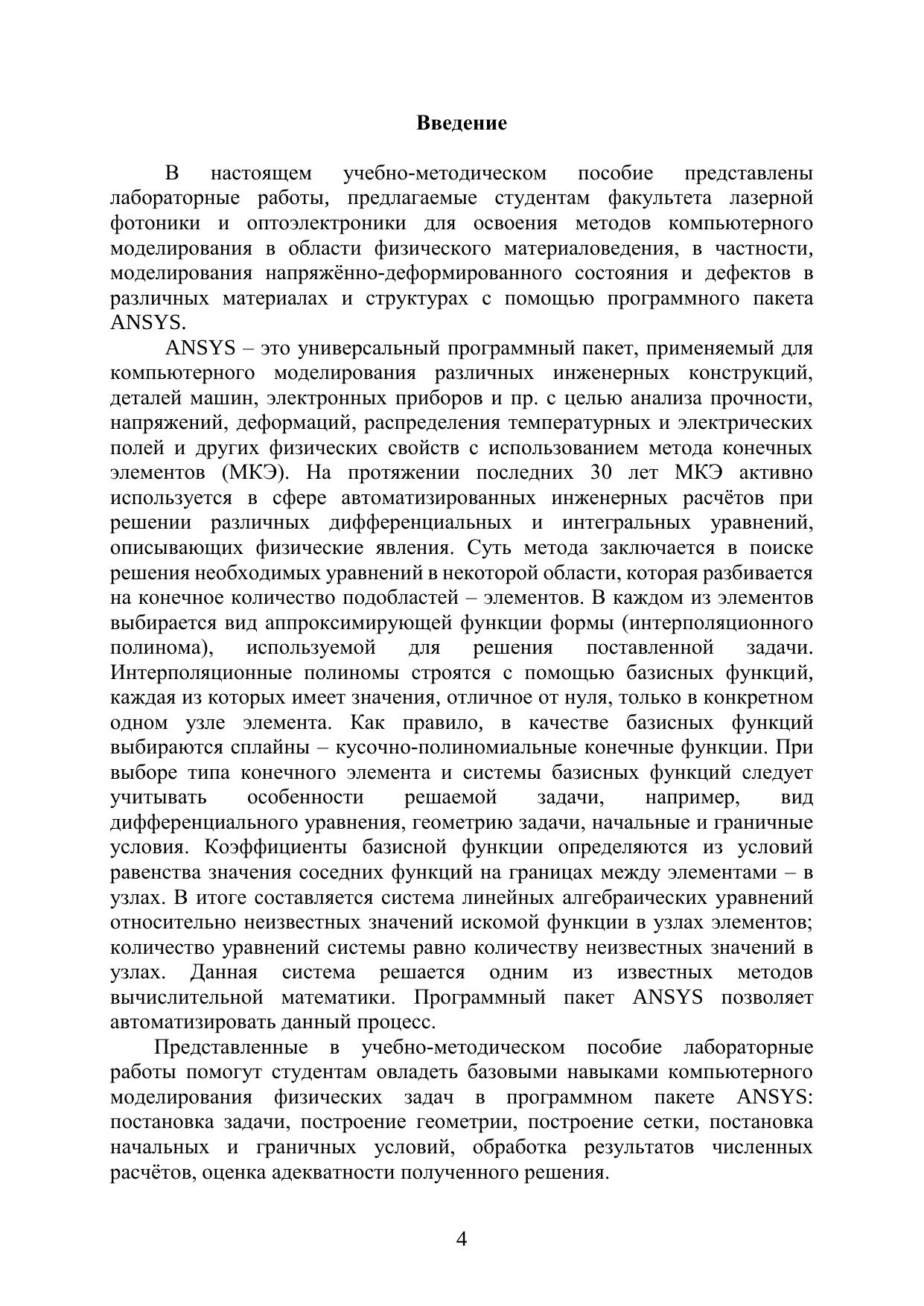 Лабораторные работы, представленные в настоящем учебно-методическом пособие, предлагаются для выполнения студентам, обучающимся по направлению подготовки 16.04.01 «Техническая физика», для закрепления и применения знаний, полученных на лекциях, практических занятиях и во время самостоятельной работы. Настоящие работы посвящены численному моделированию механических и физических свойств функциональных материалов, которые используются в современных полупроводниковых приборах и устройствах. Студентам предлагается провести компьютерное моделирование напряжённо-деформированного состояния различных гетероструктур, в том числе в присутствии внешних воздействий, а также изучить поведение дефектов в гетероструктурах. В учебно-методическом пособие дана теоретическая справка к лабораторным работам.