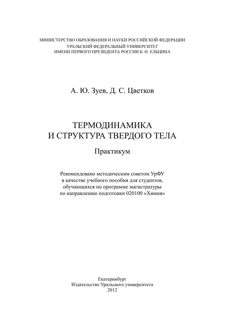Термодинамика и структура твердого тела : практикум: учеб. пособие