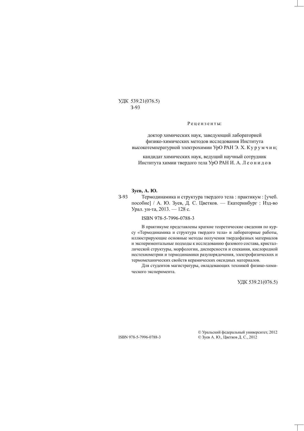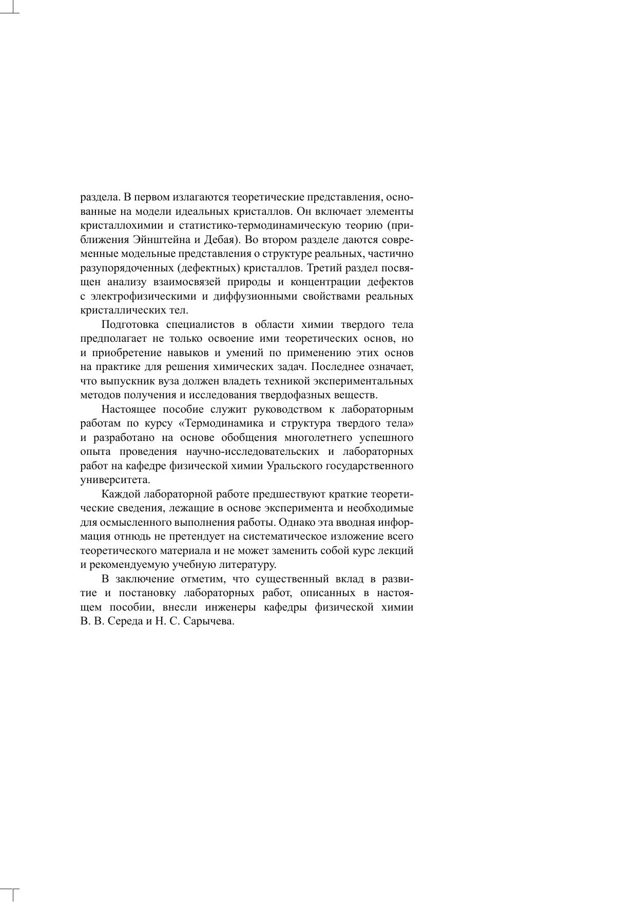 В практикуме представлены краткие теоретические сведения по курсу «Термодинамика и структура твердого тела» и лабораторные работы, иллюстрирующие основные методы получения твердофазных материалов и экспериментальные подходы к исследованию фазового состава, кристаллической структуры, морфологии, дисперсности и спекания, кислородной нестехиометрии и термодинамики разупорядочения, электрофизических и термомеханических свойств керамических оксидных материалов.