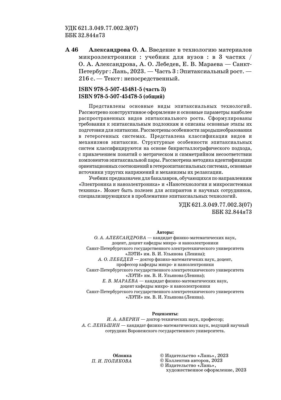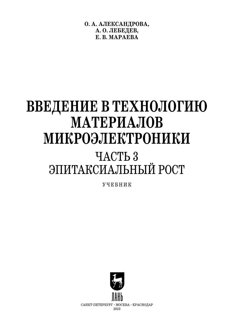 Введение в технологию материалов микроэлектроники. В 3 частях. Часть 3. Эпитаксиальный рост Александрова О. А., Лебедев А. О., Мараева Е. В.