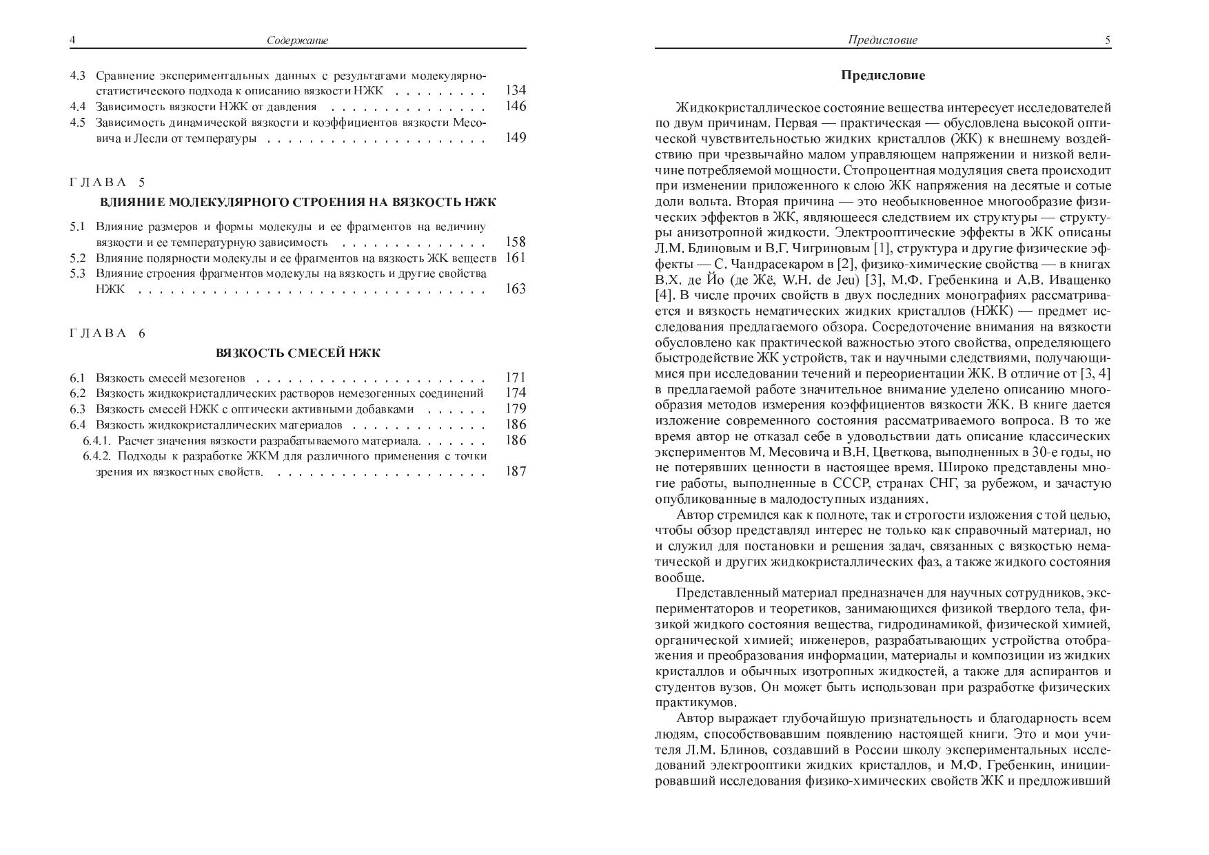 Впервые систематически рассмотрены гидродинамические свойства анизотропных жидкостей (нематических жидких кристаллов - НЖК). Описаны методы измерения анизотропных вязкостей и экспериментальные зависимости вязкости НЖК от всех термодинамических параметров ($p$, $V$, $T$), которые сопоставляются с разработанными к настоящему времени эмпирических подходами, молекулярно-статистическими и молекулярно-динамическими теориями. Предложены методы расчета вязкости, позволяющие с высокой точностью предсказать ее величину. Рассмотрена температурная зависимость вязкости для жидкокристаллических веществ и смесей. Подробно проанализирован состав современных жидкокристаллических материалов для оптоэлектронных устройств с точки зрения получения смесей с оптимальной вязкостью и требуемым быстродействием. Для научных сотрудников, экспериментаторов и теоретиков, занимающихся физикой твердого тела, физикой жидкого состояния вещества, гидродинамикой, физической химией. А также для аспирантов и студентов соответствующих специальностей.