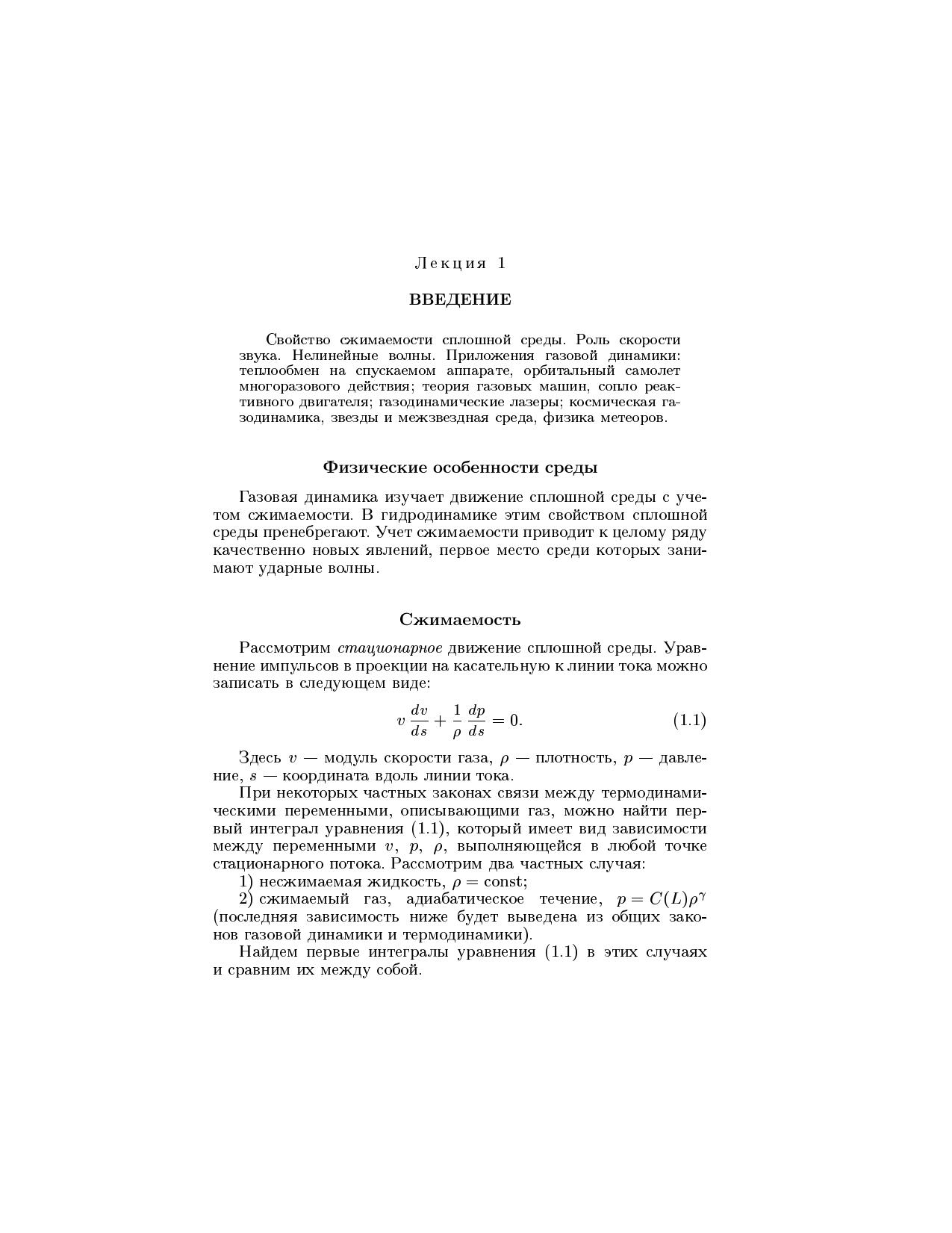Лекции по газовой динамике