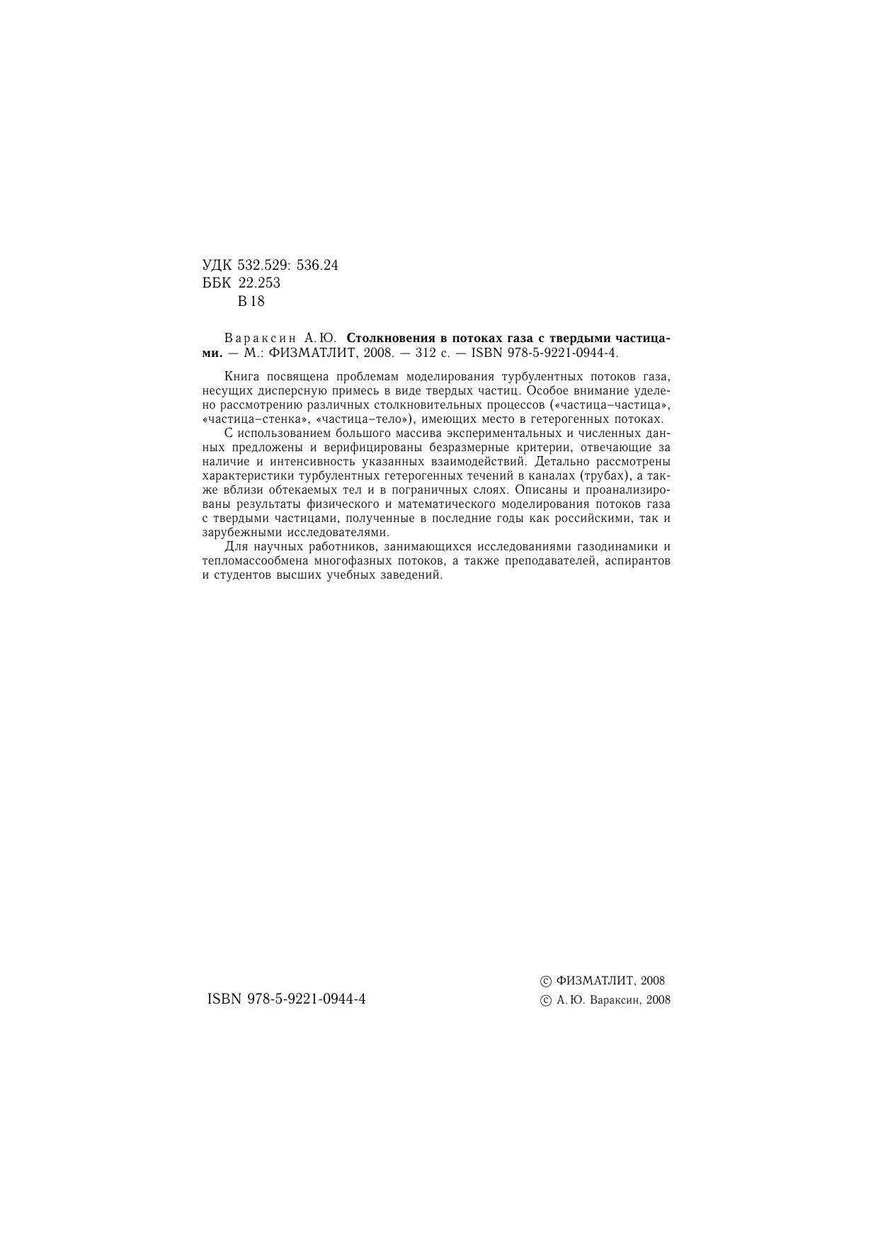 Книга посвящена проблемам моделирования турбулентных потоков газа, несущих дисперсную примесь в виде твердых частиц. Особое внимание уделено рассмотрению различных столкновительных процессов («частица-частица», «частица-стенка», «частица-тело»), имеющих место в гетерогенных потоках. С использованием большого массива экспериментальных и численных данных предложены и верифицированы безразмерные критерии, отвечающие за наличие и интенсивность указанных взаимодействий. Детально рассмотрены характеристики турбулентных гетерогенных течений в каналах (трубах), а также вблизи обтекаемых тел и в пограничных слоях. Описаны и проанализированы результаты физического и математического моделирования потоков газа с твердыми частицами, полученные в последние годы как российскими, так и зарубежными исследователями. Для научных работников, занимающихся исследованиями газодинамики и тепломассообмена многофазных потоков, а также преподавателей, аспирантов и студентов высших учебных заведений.