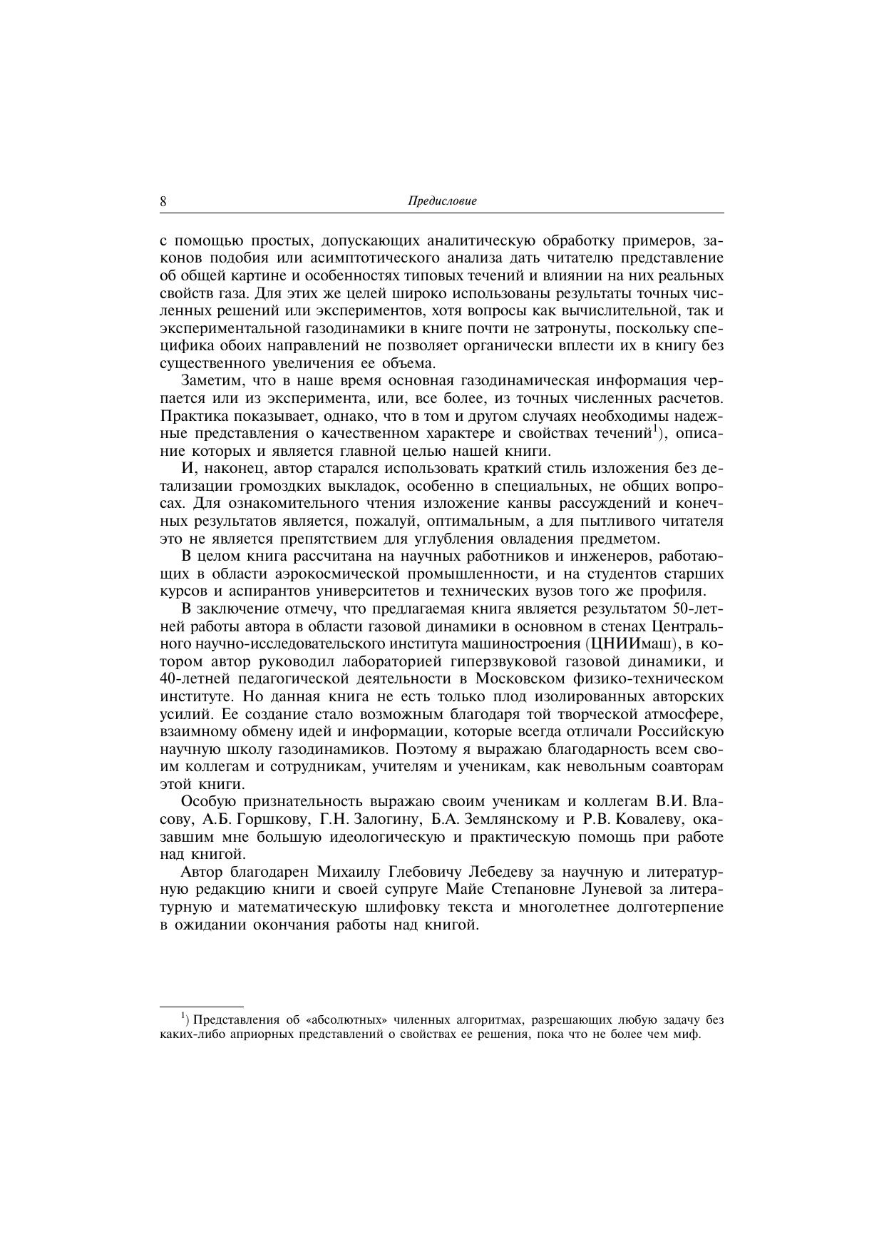 В монографии изложены основы современной газовой динамики. Специальные главы посвящены проблемам высокоскоростного течения вязкого релаксирующего газа с учетом протекающих в нем сопутствующих высокотемпературных процессов. Для студентов и аспирантов вузов, а также научных работников и инженеров научно-исследовательских институтов авиационного и ракетно-космического профиля.