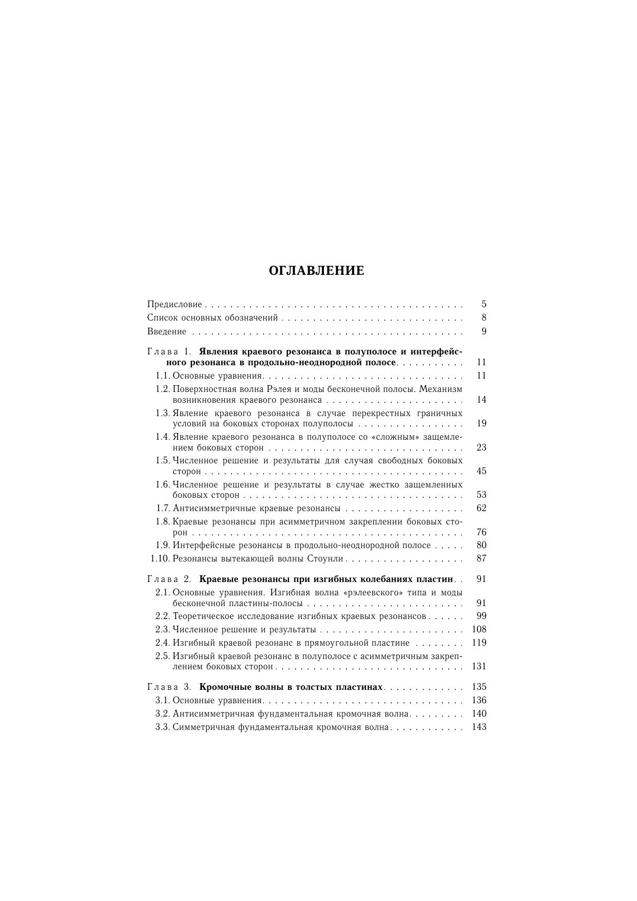 Монография посвящена анализу резонансных явлений в упругих телах различной геометрии, в том числе тонкостенных (пластинки и оболочки), характеризующихся локализацией формы колебаний при резонансе вблизи края тела (краевой резонанс) или линии контакта тел с различными упругими свойствами (интерфейсный резонанс). Весь материал, вошедший в монографию, объединяет единый оригинальный подход, разработанный авторами и~основанный на представлении о связи явлений краевого и интерфейсного резонансов с поверхностными волнами, распространяющимися вдоль края тела либо линии контакта. Для научных и инженерно-технических работников, аспирантов и студентов старших курсов, интересующихся проблемами механики деформируемого твердого тела, теории оболочек, теории колебаний.