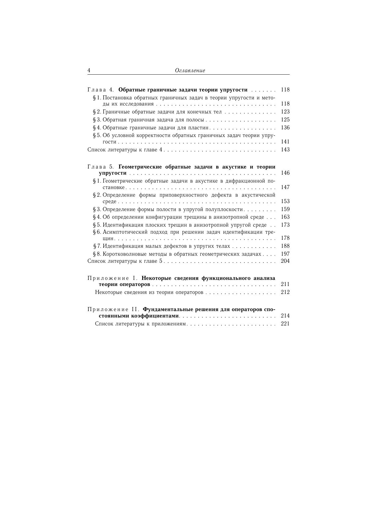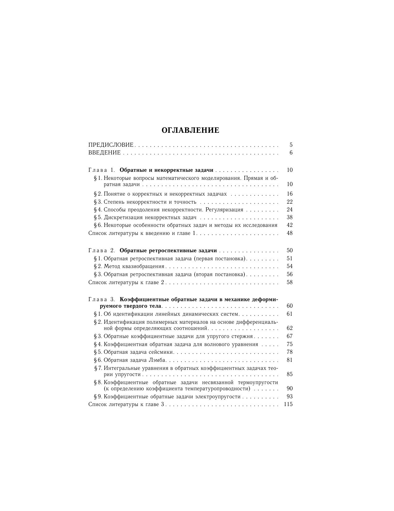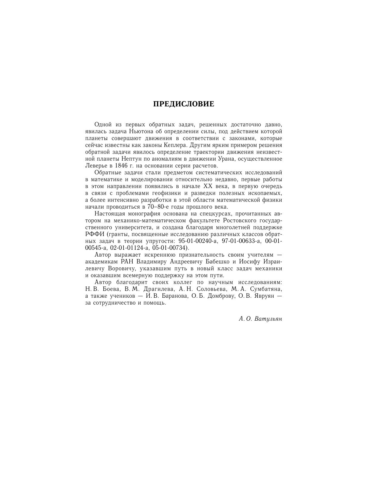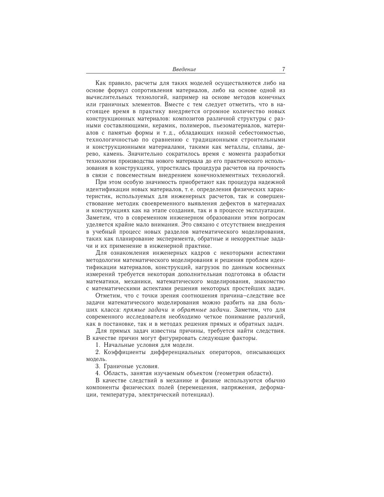 Рассмотрены различные классы обратных задач механики деформируемого твердого тела - ретроспективные, граничные, коэффициентные, геометрические, в которых по некоторой дополнительной экспериментальной информации о решении определяются коэффициенты дифференциальных операторов, начальные условия, граничные условия, геометрия внутренних дефектов (полостей, трещин). Излагаются постановки задач, основы общих подходов в теории обратных и некорректных задач, особенности итерационных схем и методов регуляризации при решении конкретных обратных задач теории упругости, акустики, вязкоупругости, электроупругости, теплопроводности. Представлены как схемы построения операторных уравнений с компактными операторами, так и методы доказательства теорем единственности, предложены различные способы построения приближенных решений, представлены численные результаты на основе методов регуляризации. Для научных и инженерно-технических работников в области механики деформируемого твердого тела, численных методов, дефектометрии, геофизики, экспериментальной механики, для студентов старших курсов и аспирантов, специализирующихся по направлениям «механика», «прикладная математика».