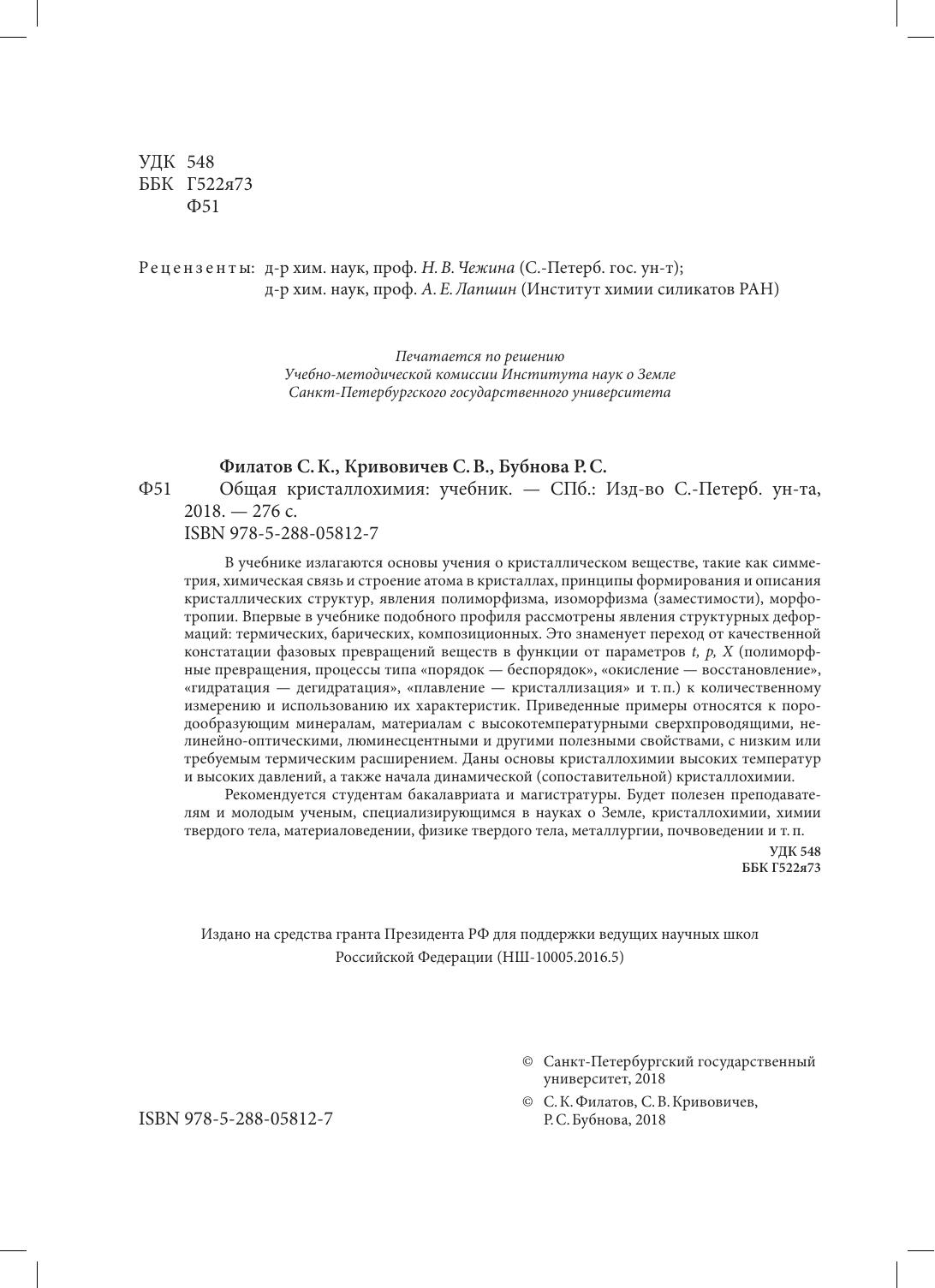 Авторы: Филатов С.К., Кривовичев С.В., Бубнова Р.С.
