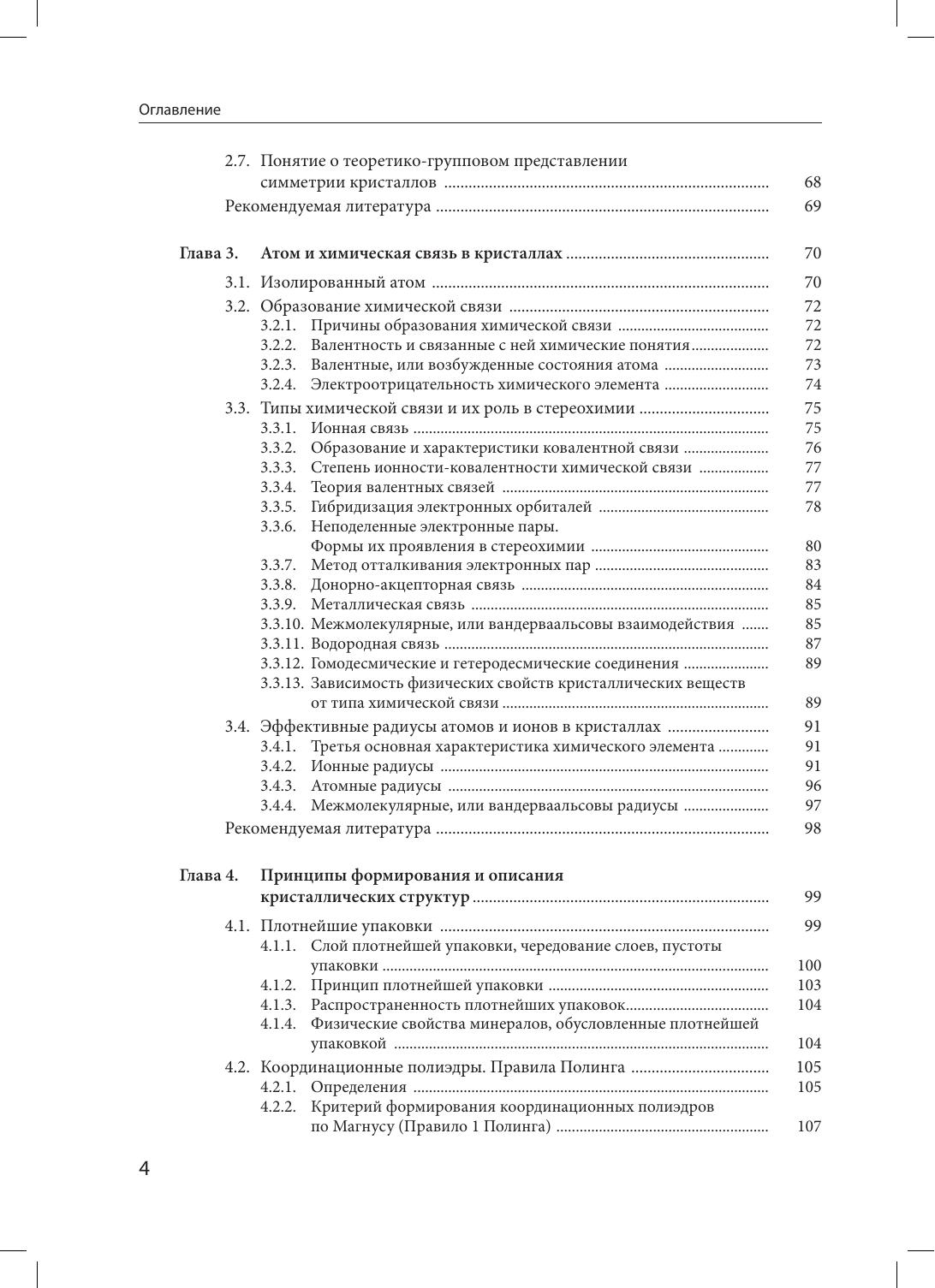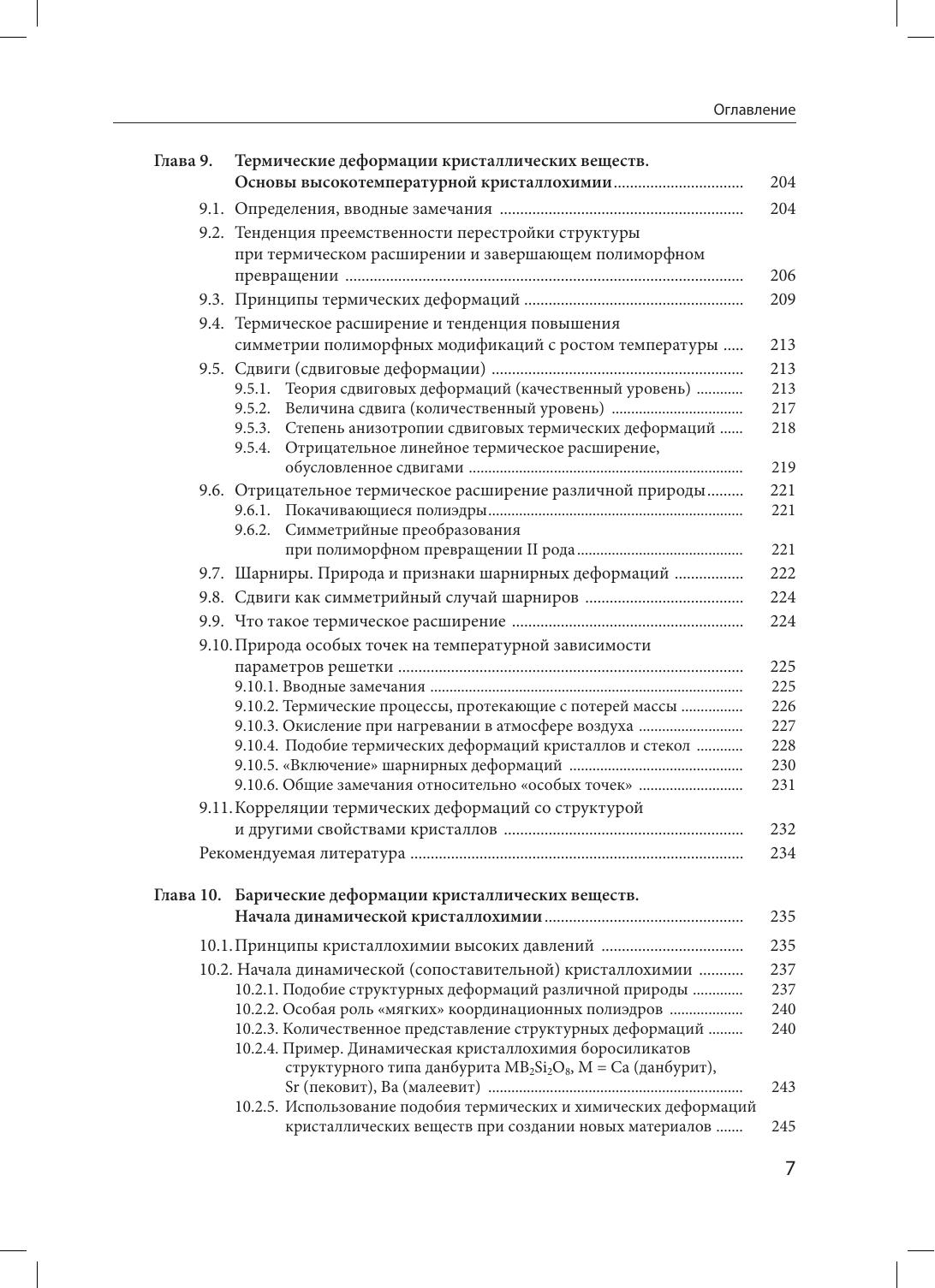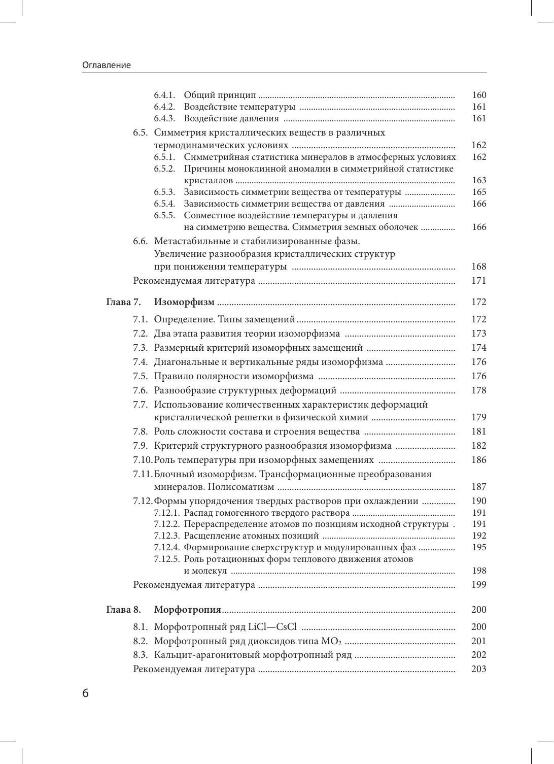 В учебнике излагаются основы учения о кристаллическом веществе, такие как симметрия, химическая связь и строение атома в кристаллах, принципы формирования и описания кристаллических структур, явления полиморфизма, изоморфизма (заместимости), морфотропии. Впервые в учебнике подобного профиля рассмотрены явления структурных деформаций: термических, барических, композиционных. Это знаменует переход от качественной констатации фазовых превращений веществ в функции от параметров t, p, X (полиморфные превращения, процессы типа «порядок — беспорядок», «окисление — восстановление», «гидратация — дегидратация», «плавление — кристаллизация» и т. п.) к количественному измерению и использованию их характеристик. Приведенные примеры относятся к породообразующим минералам, материалам с высокотемпературными сверхпроводящими, нелинейно-оптическими, люминесцентными и другими полезными свойствами, с низким или требуемым термическим расширением. Даны основы кристаллохимии высоких температур и высоких давлений, а также начала динамической (сопоставительной) кристаллохимии.