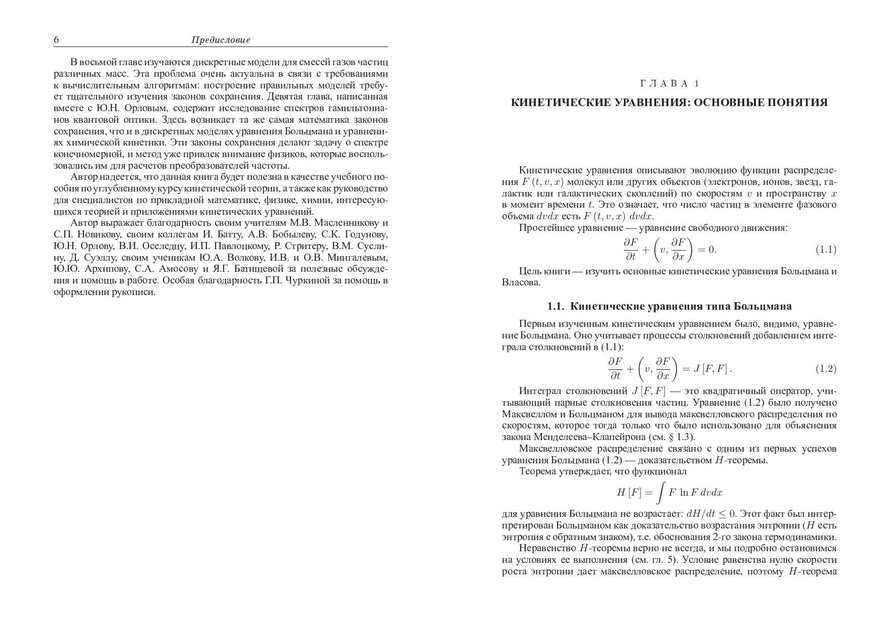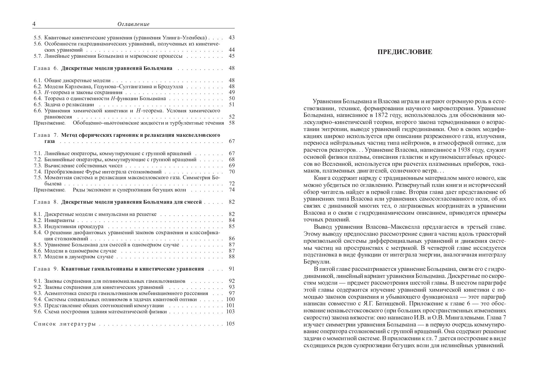 Уравнение Больцмана описывает разреженный газ, его линейные варианты-перенос излучения и нейтронов. Уравнение Власова описывает плазму, электронный газ, галактики, крупномасштабную Вселенную. Изучаются вывод этих уравнений, связь с гидродинамикой, химической кинетикой, квантовой оптикой. Рассматриваются частные решения и дискретные модели этих уравнений, различные приложения. Для специалистов по математической и теоретической физике, прикладной и вычислительной математике, кинетическим уравнениям и квантовой оптике, физической и химической кинетике. Может быть использована как учебное пособие для студентов и аспирантов математических, физических и химических специальностей.