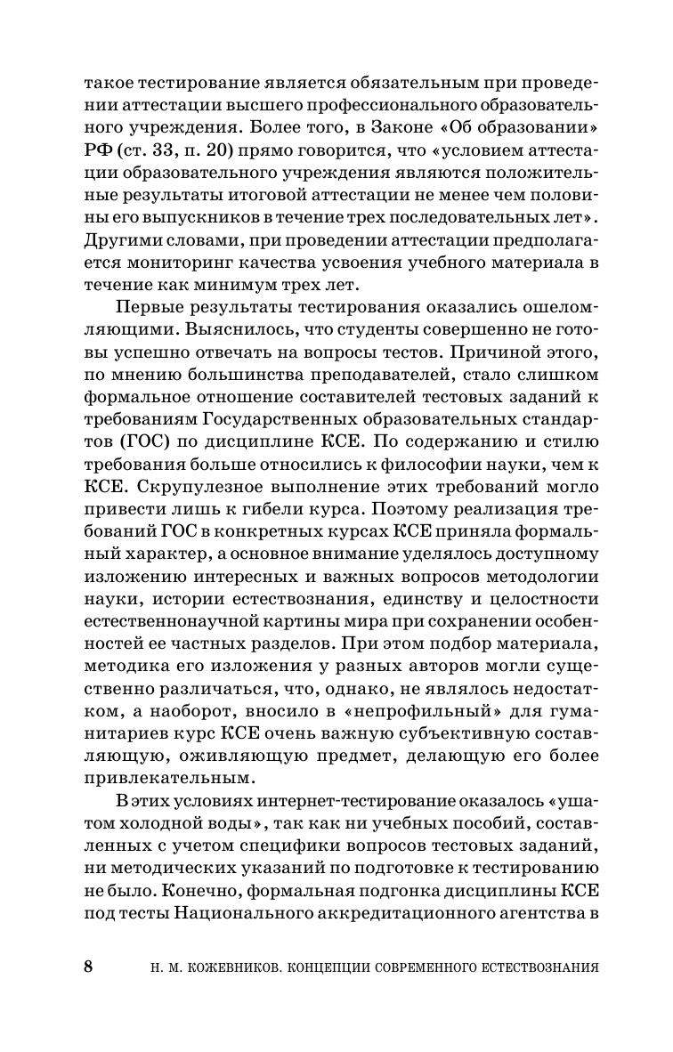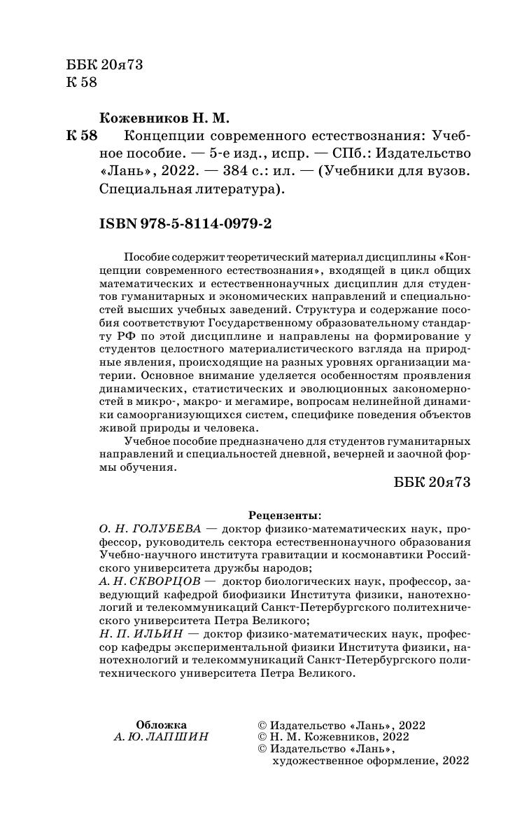 Пособие содержит теоретический материал дисциплины «Концепции современного естествознания», входящей в цикл общих математических и естественнонаучных дисциплин для студентов гуманитарных и экономических направлений и специальностей высших учебных заведений. Структура и содержание пособия соответствуют Государственному образовательному стандарту РФ по этой дисциплине и направлены на формирование у студентов целостного материалистического взгляда на природные явления, происходящие на разных уровнях организации материи. Основное внимание уделяется особенностям проявления динамических, статистических и эволюционных закономерностей в микро-, макро- и мегамире, вопросам нелинейной динамики самоорганизующихся систем, специфике поведения объектов живой природы и человека. Учебное пособие предназначено для студентов гуманитарных направлений и специальностей дневной, вечерней и заочной формы обучения.