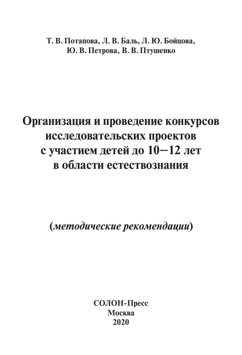 Пособие разработано по итогам многолетней работы авторов по разработке и реализации исследовательских программ совместно со школами и детскими садами, а также на основе конкурса исследовательских проектов с участием детей до 10-12 лет, проведенного в 2015 г. по заданию Москомобразования в рамках программы «МГУ-школе».