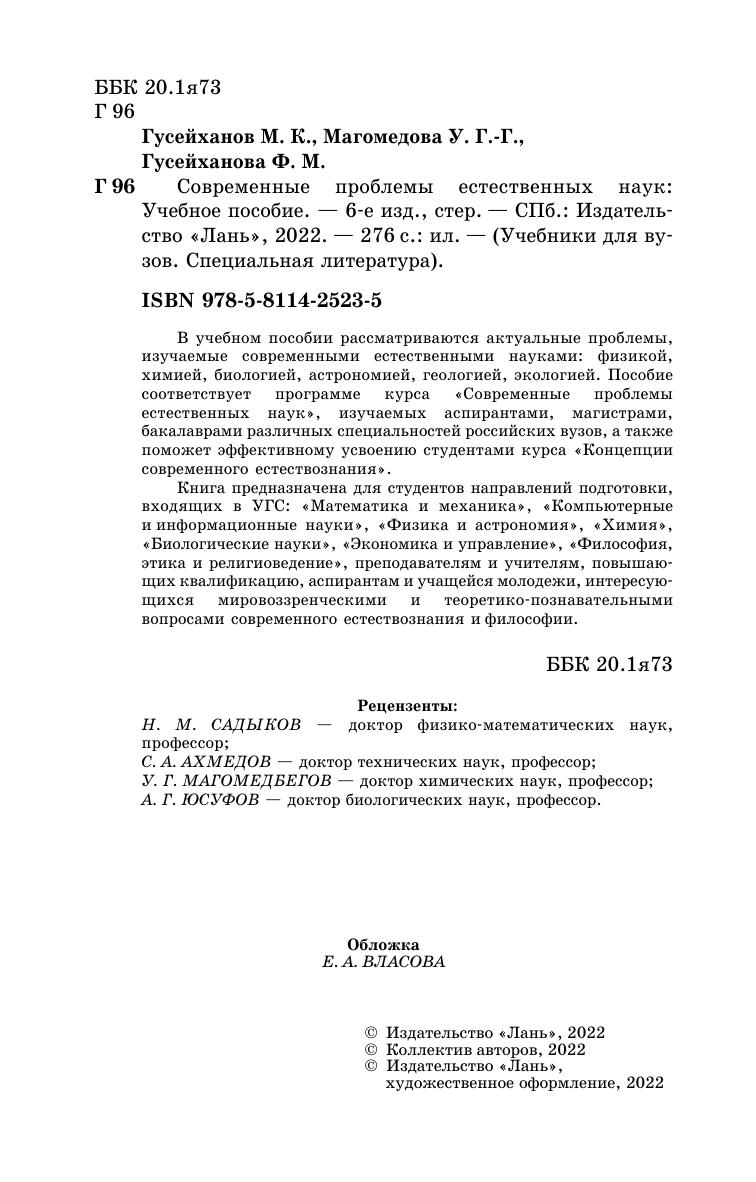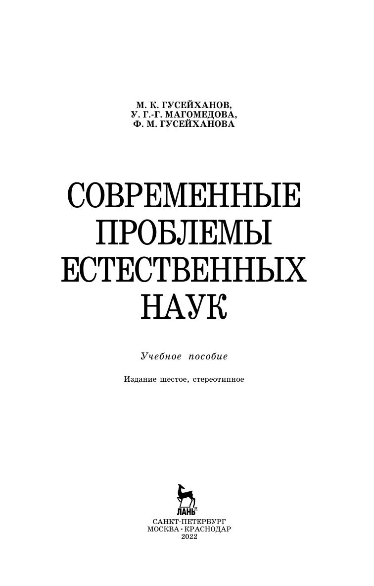 В учебном пособии рассматриваются актуальные проблемы, изучаемые современными естественными науками: физикой, химией, биологией, астрономией, геологией, экологией. Пособие соответствует программе курса «Современные проблемы естественных наук», изучаемых аспирантами, магистрами, бакалаврами различных специальностей российских вузов, а также поможет эффективному усвоению студентами курса «Концепции современного естествознания». Книга предназначена для студентов направлений подготовки, входящих в УГС: «Математика и механика», «Компьютерные и информационные науки», «Физика и астрономия», «Химия», «Биологические науки», «Экономика и управление», «Философия, этика и религиоведение», преподавателям и учителям, повышающих квалификацию, аспирантам и учащейся молодежи, интересующихся мировоззренческими и теоретико-познавательными вопросами современного естествознания и философии.