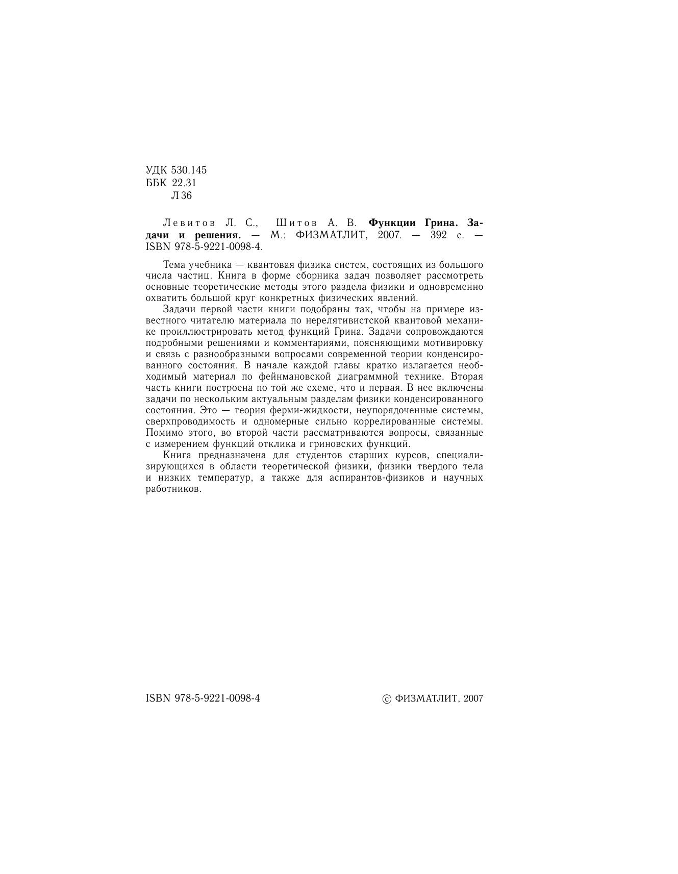Тема учебника — квантовая физика систем, состоящих из большого числа частиц. Книга в форме сборника задач позволяет рассмотреть основные теоретические методы этого раздела физики и одновременно охватить большой круг конкретных физических явлений. Задачи первой части книги подобраны так, чтобы на примере известного читателю материала по нерелятивистской квантовой механике проиллюстрировать метод функций Грина. Задачи сопровождаются подробными решениями и комментариями, поясняющими мотивировку и связь с разнообразными вопросами современной теории конденсированного состояния. В начале каждой главы кратко излагается необходимый материал по фейнмановской диаграммной технике. Вторая часть книги построена по той же схеме, что и первая. В нее включены задачи по нескольким актуальным разделам физики конденсированного состояния. Это — теория ферми-жидкости, неупорядоченные системы, сверхпроводимость и одномерные сильно коррелированные системы. Помимо этого, во второй части рассматриваются вопросы, связанные с измерением функций отклика и гриновских функций. Книга предназначена для студентов старших курсов, специализирующихся в области теоретической физики, физики твердого тела и низких температур, а также для аспирантов-физиков и научных работников.