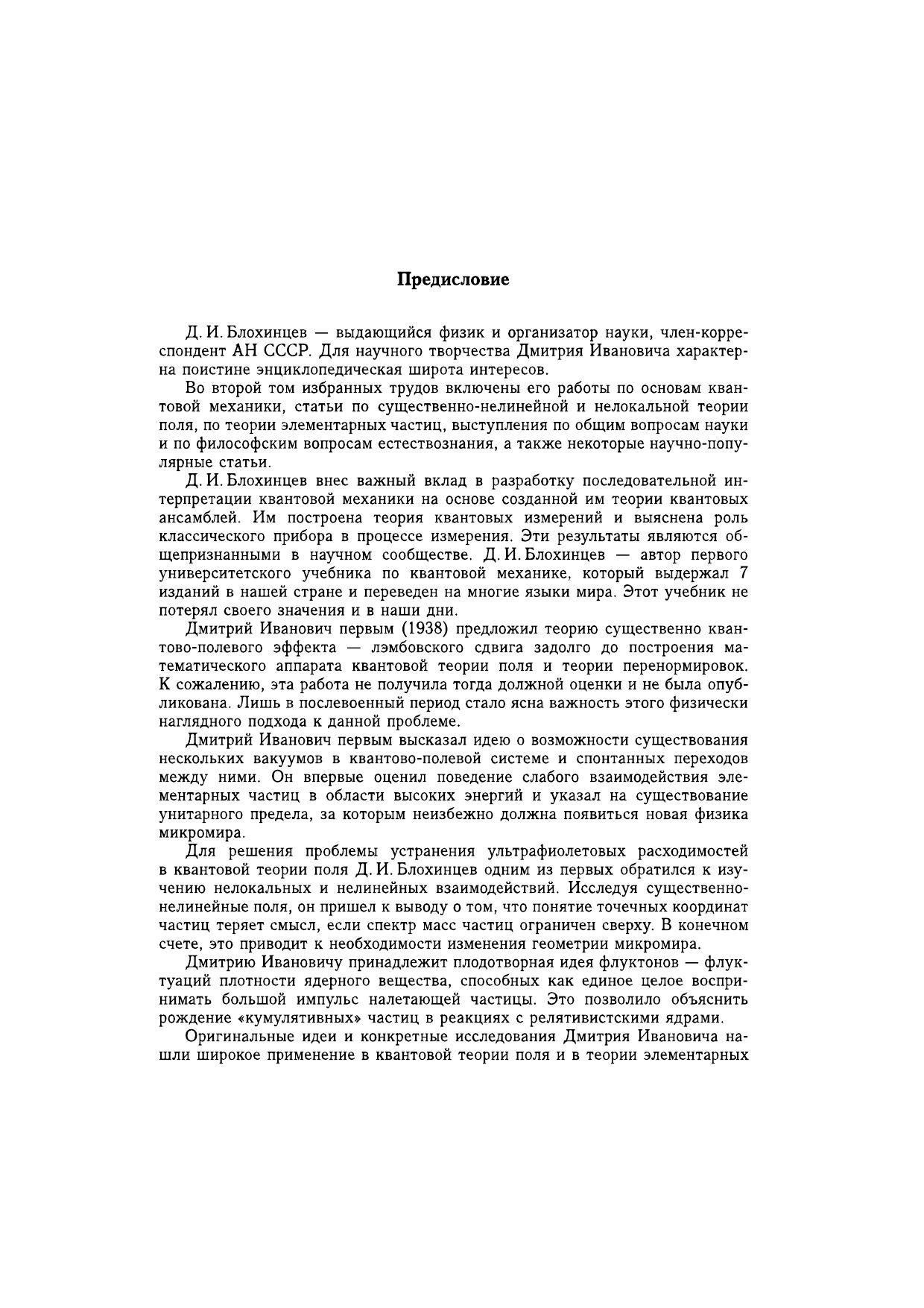 Д.И. Блохинцев (1908-1979)- выдающийся ученый-физик с энциклопедической широтой интересов, автор многочисленных монографий и классического учебника по квантовой механике, научный руководитель работ по созданию первой в мире атомной электростанции, организатор и первый директор Объединенного института ядерных исследований в Дубне, Герой Социалистического Труда, кавалер многих высших орденов СССР, лауреат Ленинской и Государственных премий СССР, член-корреспондент АН СССР и член ряда зарубежных академий. В первом томе публикуется краткий отчет о научной и общественной деятельности Д.И. Блохинцева, расширенный реферат научных работ, составленный самим автором, статьи по оптике, физике твердого тела, акустике и ядерной энергетике. Кроме того, сюда вошли автобиографические материалы, основные даты жизни и деятельности, полная библиография работ, а также воспоминания тех, кому посчастливилось работать и общаться с Дмитрием Ивановичем. Во второй том избранных трудов Д.И. Блохинцева включены работы по принципиальным вопросам квантовой механики, по квантовой теории поля и теории элементарных частиц, а также выступления по общим вопросам науки. Книга рассчитана на научных работников - физиков-теоретиков, специалистов по ядерной энергетике, аспирантов и студентов старших курсов университетов.