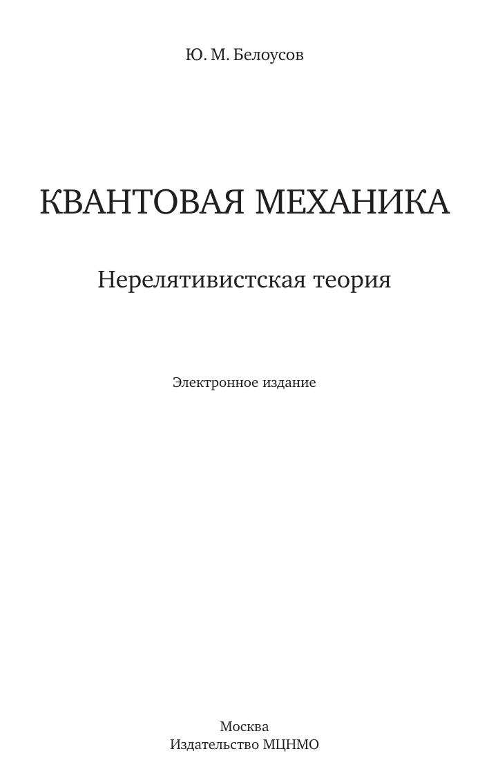Квантовая механика. Нерелятивистская теория