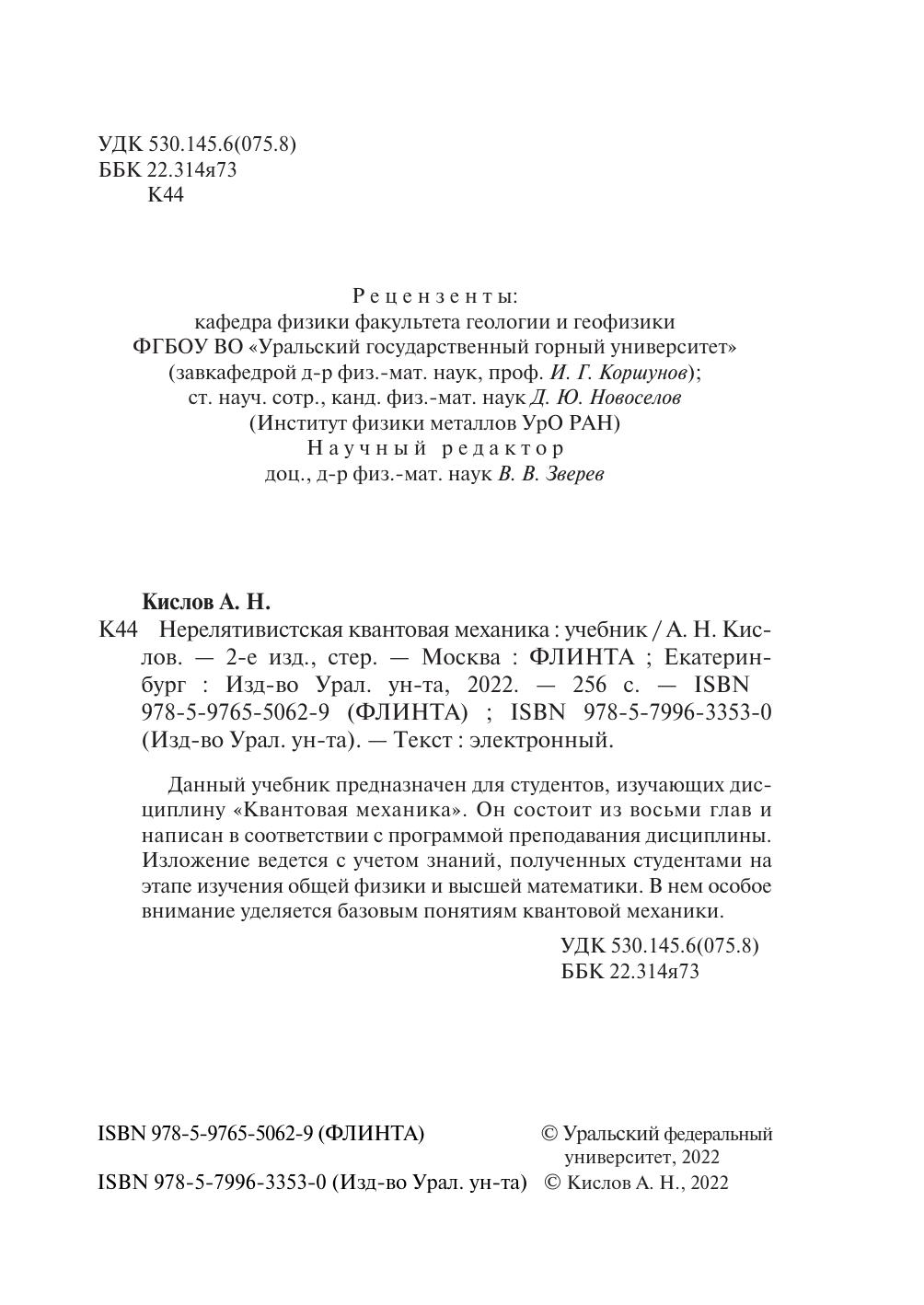 Данный учебник предназначен для студентов, изучающих дисциплину «Квантовая механика». Он состоит из восьми глав и написан в соответствии с программой преподавания дисциплины. Изложение ведется с учетом знаний, полученных студентами на этапе изучения общей физики и высшей математики. В нем особое внимание уделяется базовым понятиям квантовой механики.