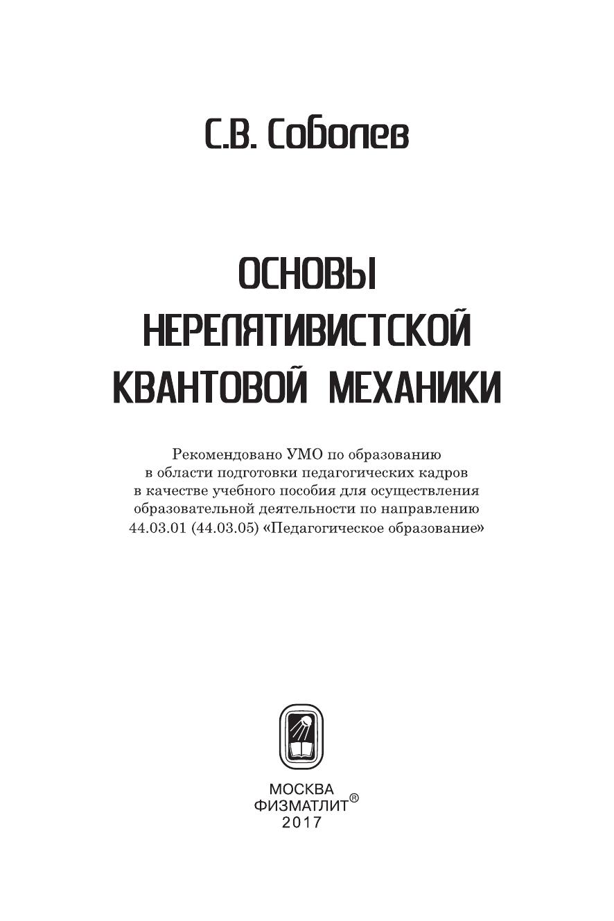 Основы нерелятивистской квантовой механики