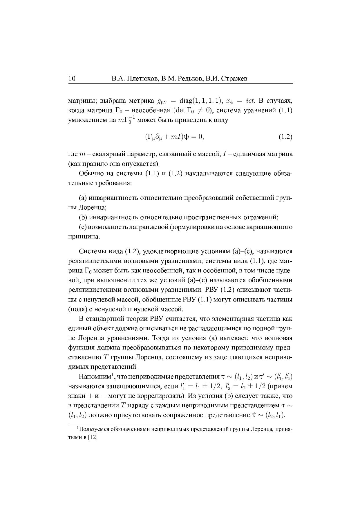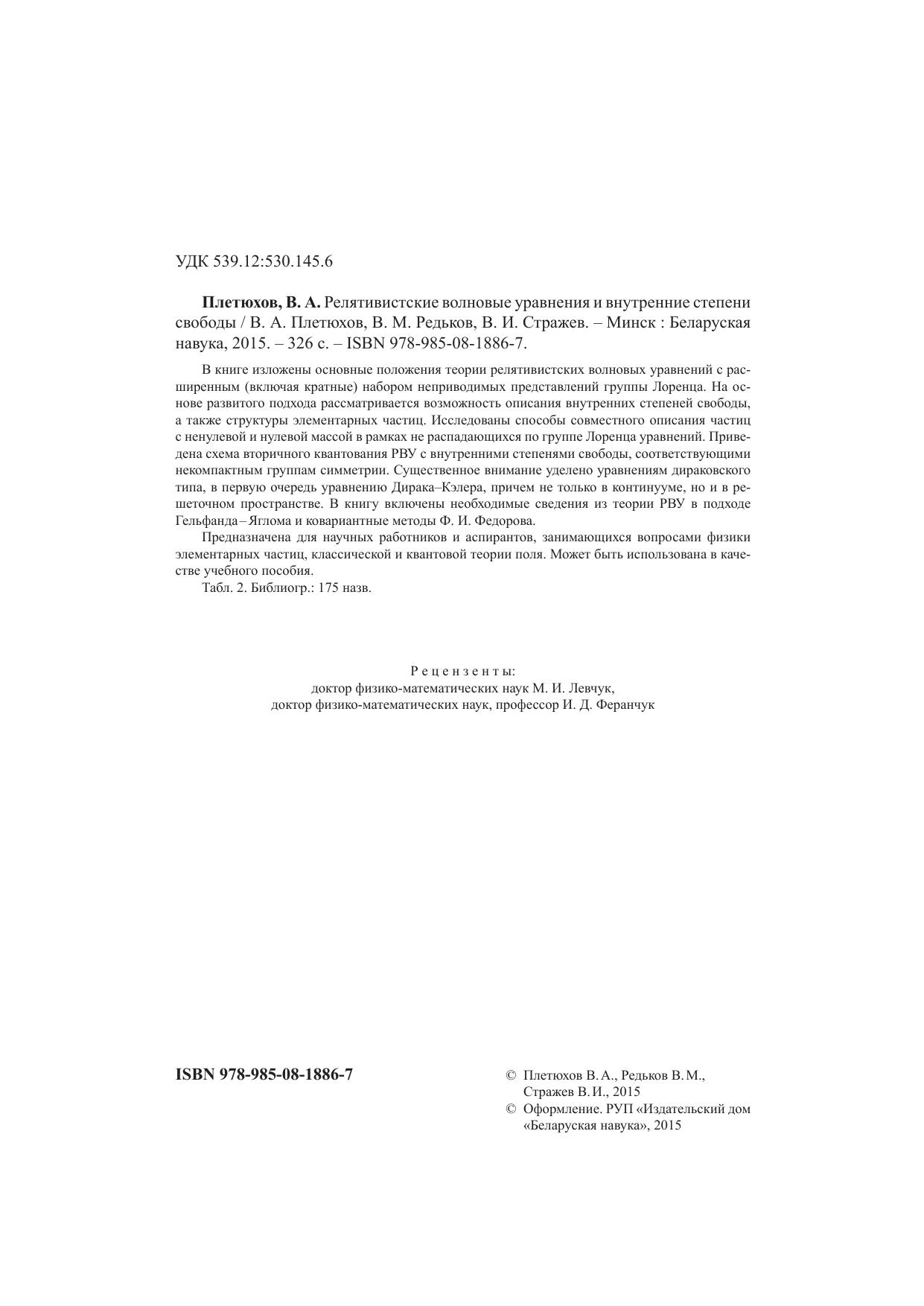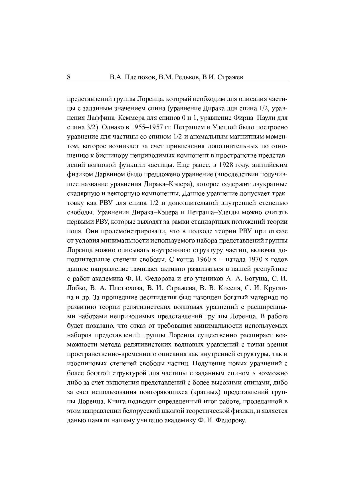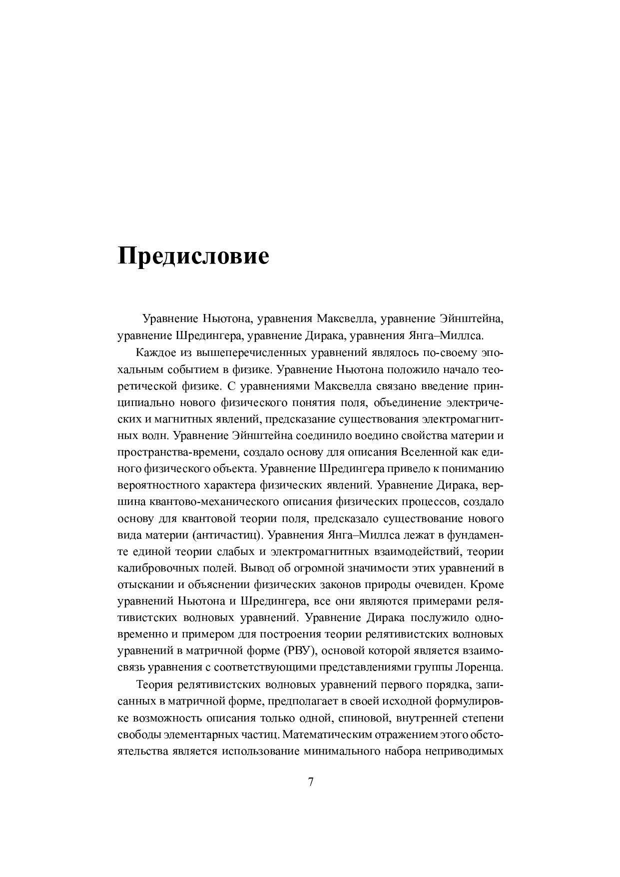 В книге изложены основные положения теории релятивистских волновых уравнений с расширенным (включая кратные) набором неприводимых представлений группы Лоренца. На основе развитого подхода рассматривается возможность описания внутренних степеней свободы, а также структуры элементарных частиц. Исследованы способы совместного описания частиц с ненулевой и нулевой массой в рамках не распадающихся по группе Лоренца уравнений. Приведена схема вторичного квантования РВУ с внутренними степенями свободы, соответствующими некомпактным группам симметрии. Существенное внимание уделено уравнениям дираковского типа, в первую очередь уравнению Дирака–Кэлера, причем не только в континууме, но и в решеточном пространстве. В книгу включены необходимые сведения из теории РВУ в подходе Гельфанда – Яглома и ковариантные методы Ф. И. Федорова. Предназначена для научных работников и аспирантов, занимающихся вопросами физики элементарных частиц, классической и квантовой теории поля. Может быть использована в качестве учебного пособия.