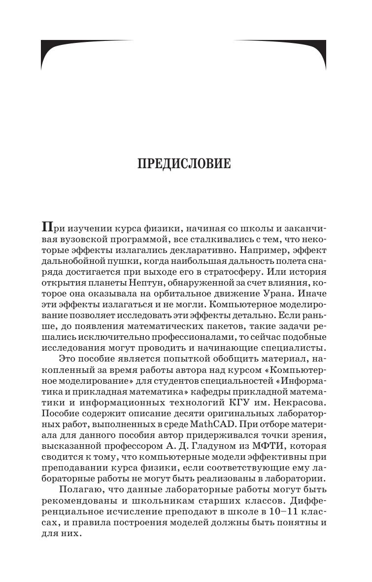 Учебное пособие содержит описание десяти оригинальных компьютерных лабораторных работ по физике. Выбор тем лабораторных работ определялся невозможностью или трудностью реализации их в учебной физической лаборатории. Физические эффекты, на которых построены лабораторные работы, рассматриваются, как правило, в курсах физики, но теоретическое описание их невозможно без привлечения численных методов. Поэтому для их изучения и выбран метод компьютерного моделирования. Пособие дает первичные навыки построения моделей и предназначено для студентов инженерно-технических специальностей вузов. Может также использоваться в качестве лекционных демонстраций.