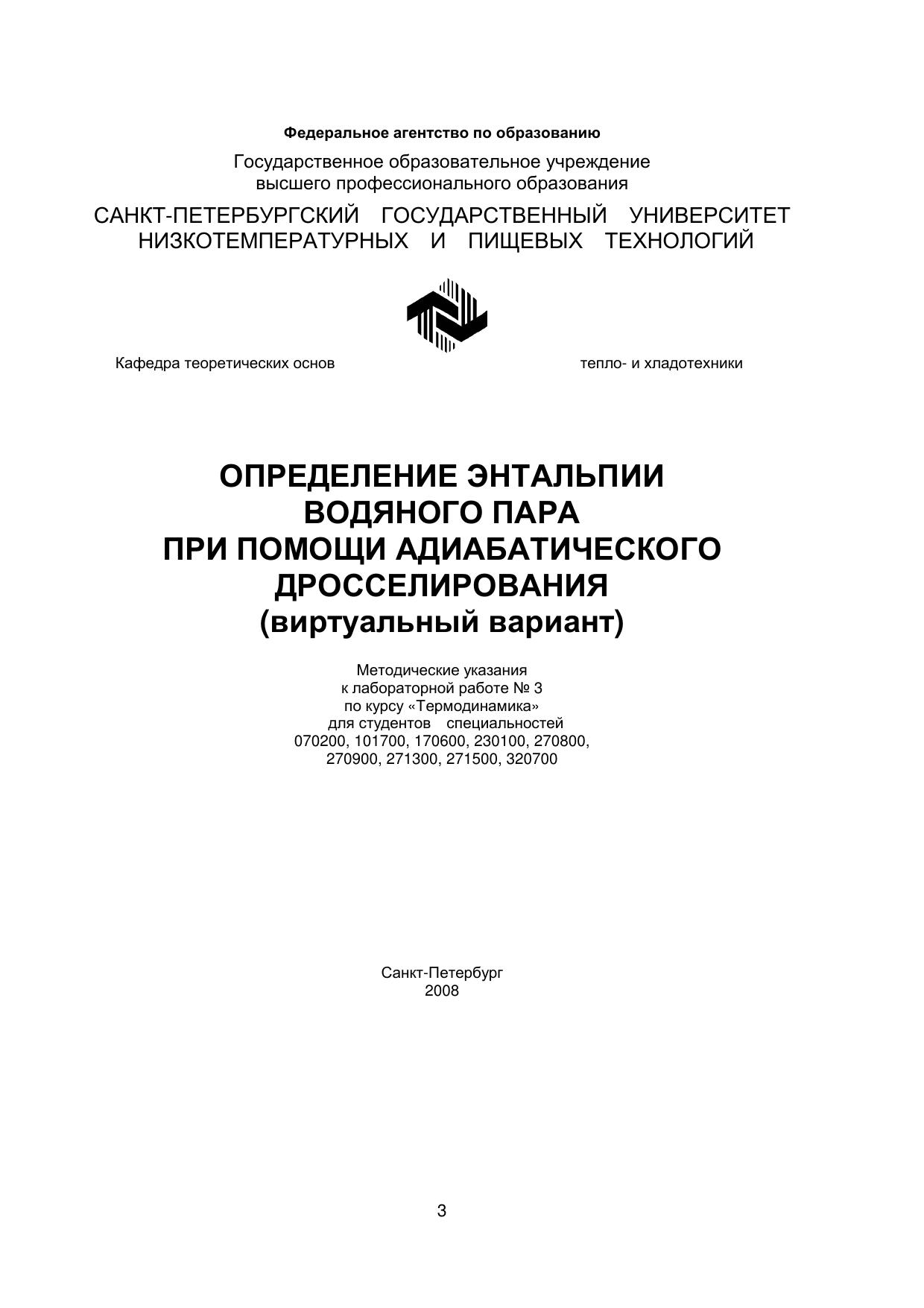 Определение энтальпии водяного пара при помощи адиабатического дросселирования (виртуальный вариант)