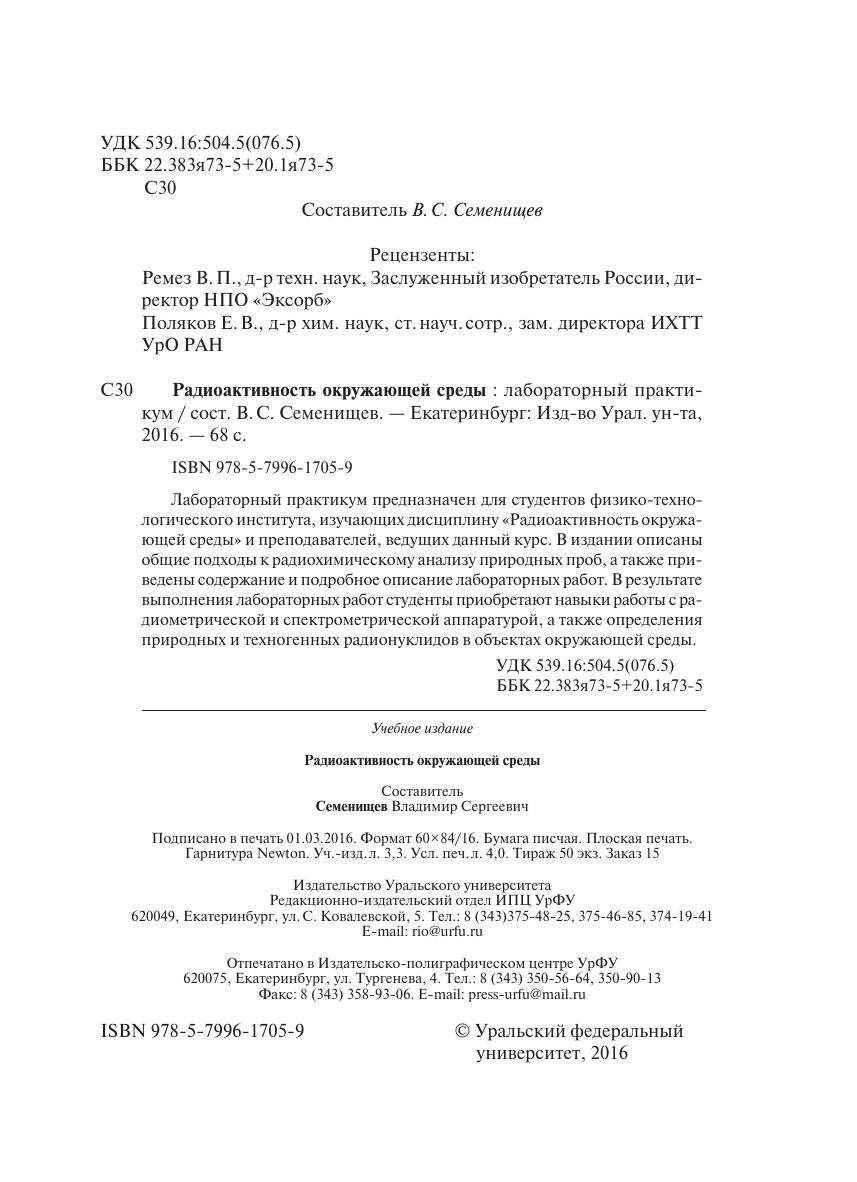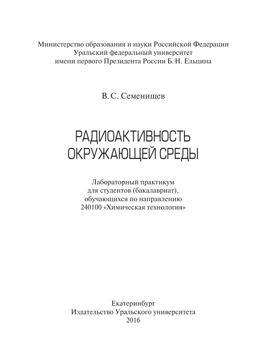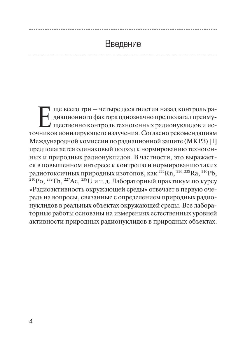 Лабораторный практикум предназначен для студентов физико-технологического института, изучающих дисциплину «Радиоактивность окружающей среды» и преподавателей, ведущих данный курс. В издании описаны общие подходы к радиохимическому анализу природных проб, а также приведены содержание и подробное описание лабораторных работ. В результате выполнения лабораторных работ студенты приобретают навыки работы с радиометрической и спектрометрической аппаратурой, а также определения природных и техногенных радионуклидов в объектах окружающей среды.