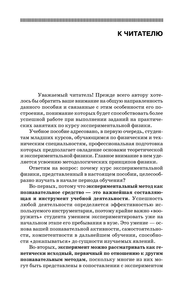 В пособии излагается содержание курса экспериментальной физики, который входит в состав курса общей физики для студентов физических специальностей университетов, а также педагогических и технических вузов. Эксперимент рассматривается как общенаучный метод, как метод экспериментально-теоретического уровня методологии науки, как родовой метод, включающий широкий спектр познавательных методов (натурный, модельный и мысленный эксперимент). Значительное внимание уделяется компьютерным технологиям обработки данных натурного эксперимента и моделирования, которые выступают обязательными компонентами содержания и процесса обучения. Приводятся типовые примеры выполнения экспериментов различных видов с использованием простого оборудования. Пособие предназначено для студентов высших учебных заведений, обучающихся по физическим и техническим специальностям, а также может быть полезно преподавателям вузов и учителям физики общеобразовательных школ.