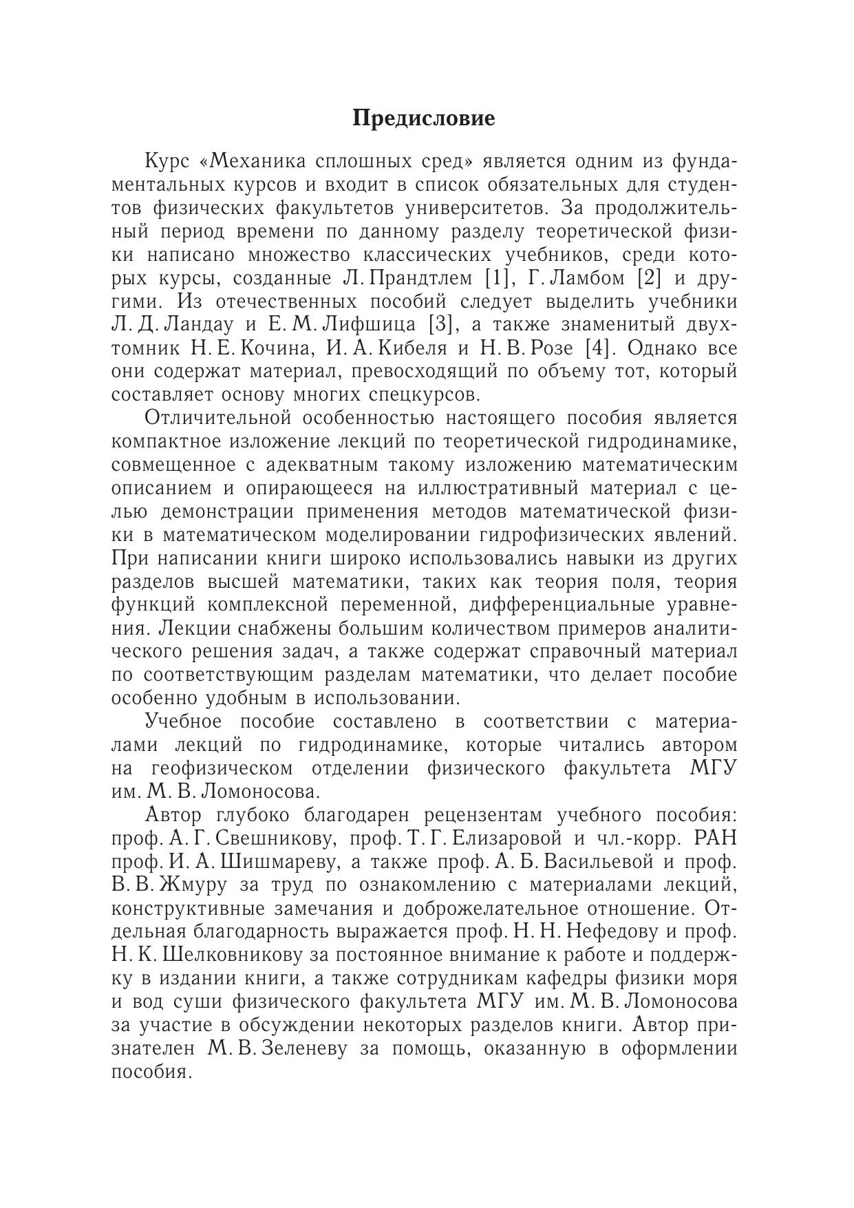 Учебное пособие содержит наиболее важные разделы гидродинамики, связанные с изучением движений идеальных и вязких жидкостей. Основная часть книги посвящена вопросам математического моделирования гидрофизических явлений в целом и в конкретных случаях. Здесь представлены основные принципы, положенные в основу гидродинамических моделей, выписаны часто используемые упрощающие предположения и соответствующие им модели, приведены примеры аналитического решения широкого круга задач в этих упрощенных постановках. Особое внимание обращается на применение методов математической физики при решении задач гидродинамики. Текст пособия содержит справочный материал по некоторым разделам высшей математики.Книга предназначена студентам и аспирантам высших учебных заведений, обучающимся по специальности «физика», а также преподавателям соответствующих вузов.