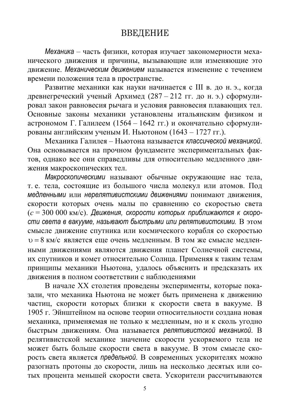В учебном пособии на доступном уровне изложены современные фундаментальные вопросы курса общей физики по разделам: кинематика, динамика материальной точки и поступательного движения твердого тела, механика вращательного движения твердого тела, неинерциальные системы отсчета, механика жидкостей, специальная теория относительности. Структура пособия построена так, что позволяет обучающемуся вести самостоятельную подготовку, подкрепляя ее приведенными в тексте контрольными вопросами и решением задач, завершающими каждую главу. Учебное пособие предназначено для подготовки студентов ссузов различных специальностей. Оно может быть полезно учащимся физико-математических классов, преподавателям подготовительных отделений вузов, ассистентам, проводящим практические занятия по физике.