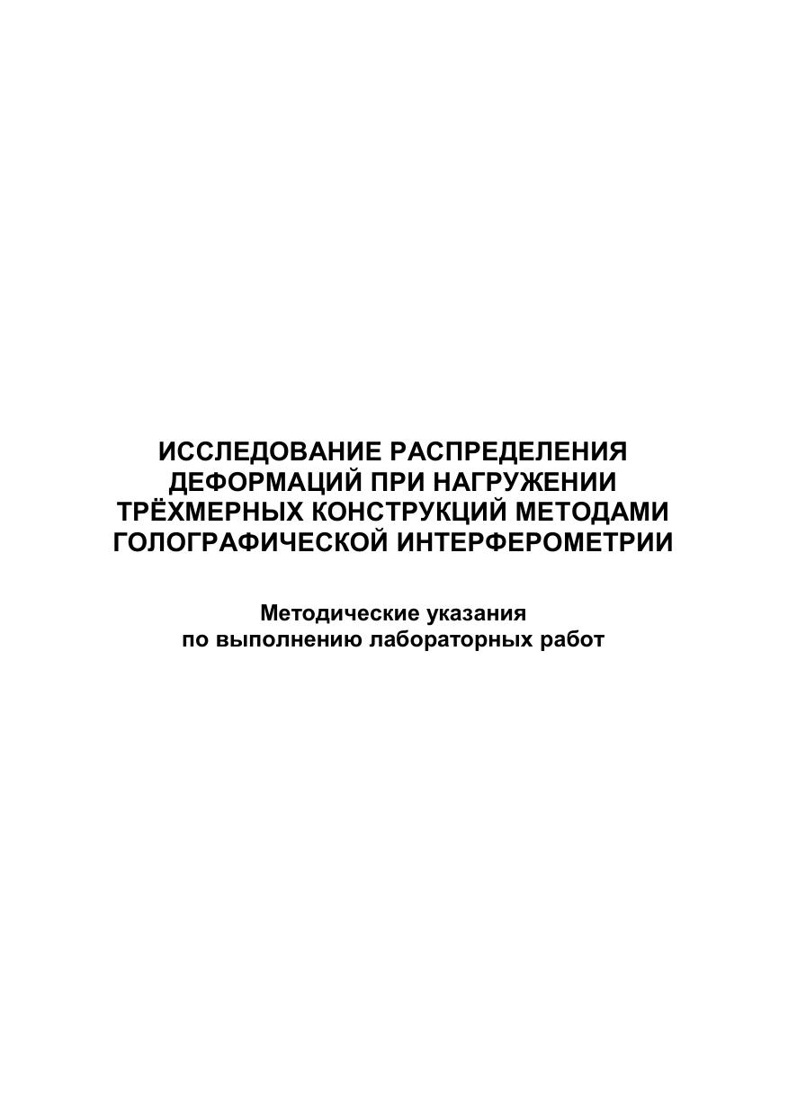 Методические указания составлены в соответствии с тематикой лабораторных занятий и программой курса «Экспериментальная механика» студентов физико-технического факультета направления подготовки 15.03.03 – Прикладная механика. В методических указаниях рассмотрены теоретические основы и порядок экспериментального исследования распределения малых деформаций в конструкциях методами голографической интерферометрии. Для преподавателей и студентов вузов.
