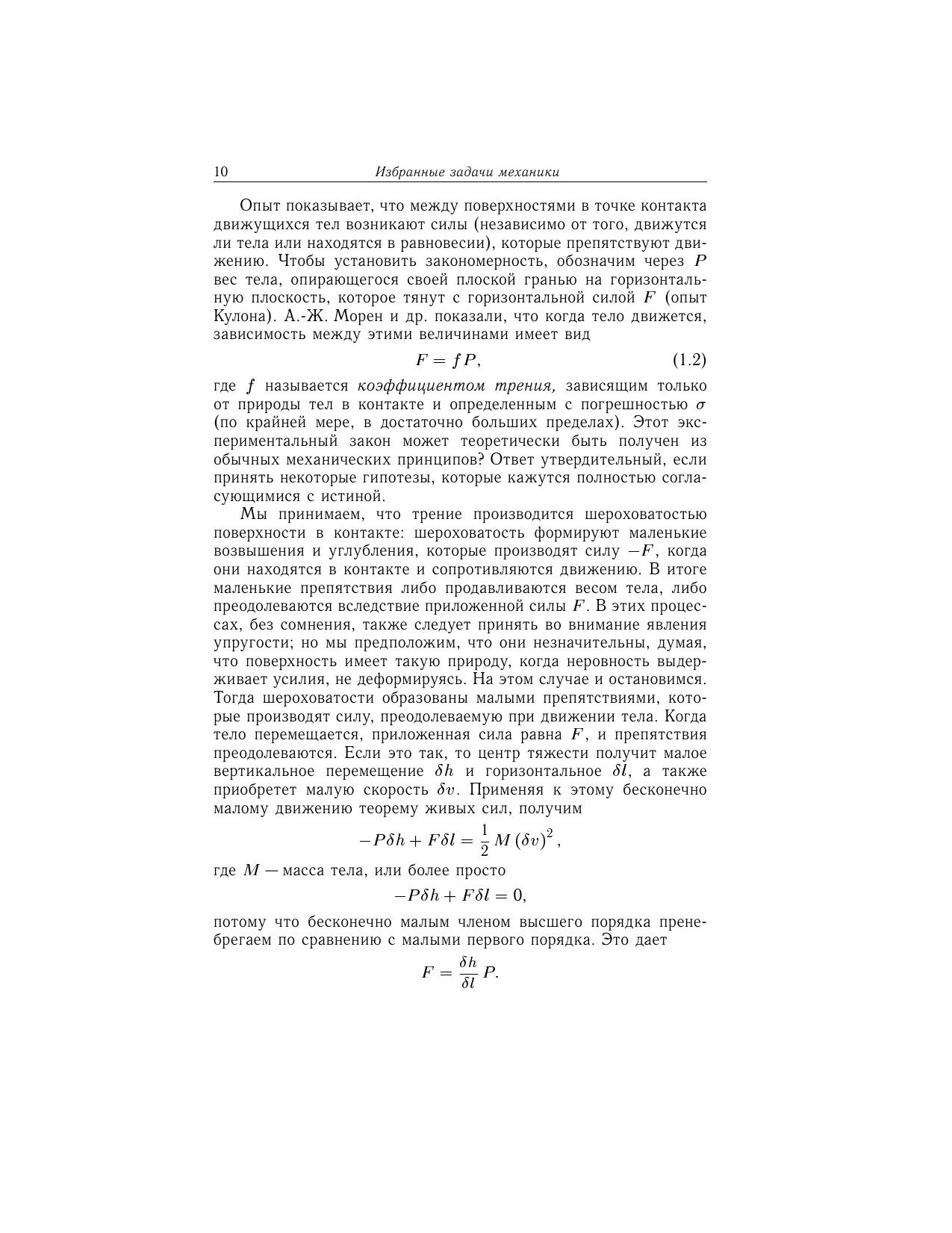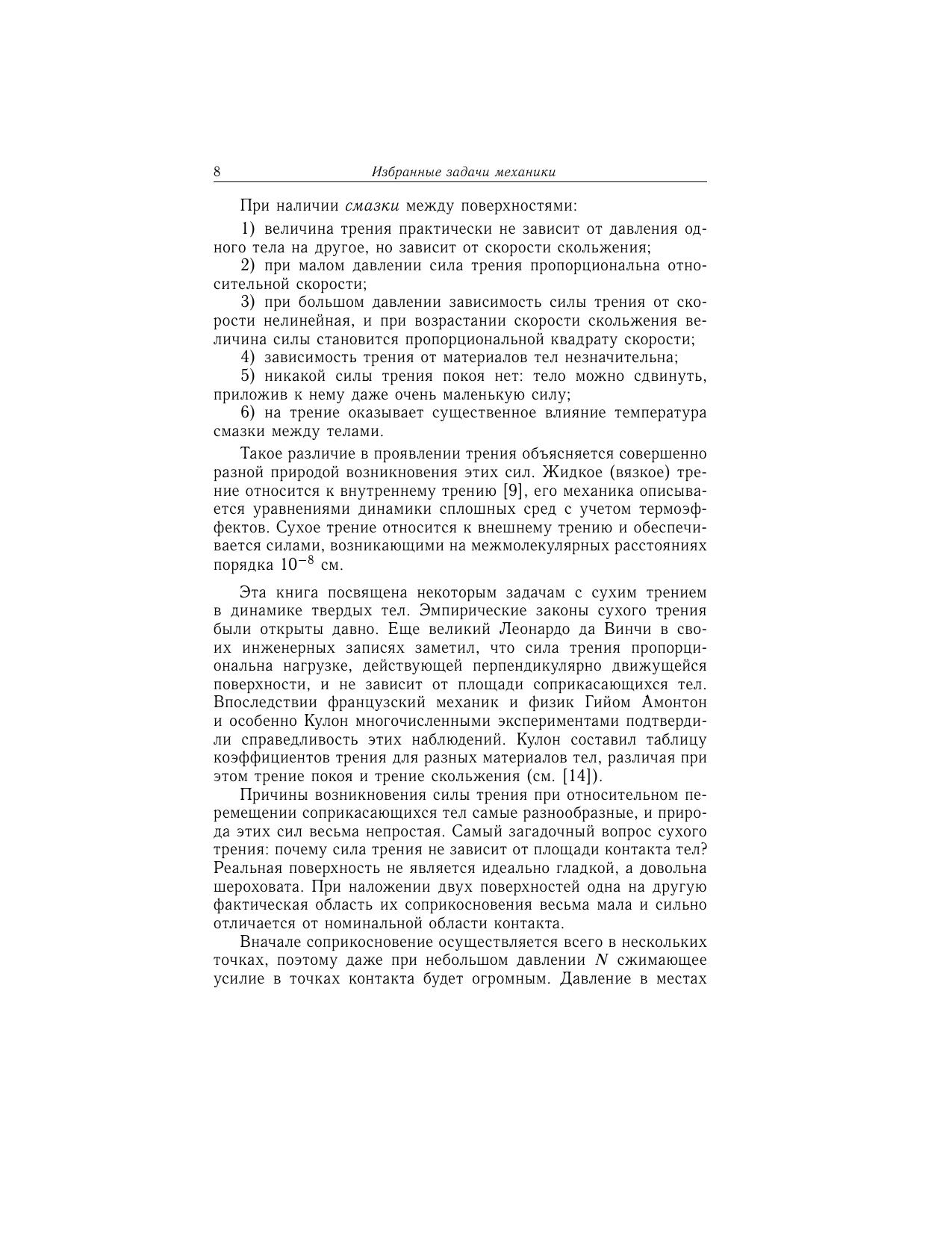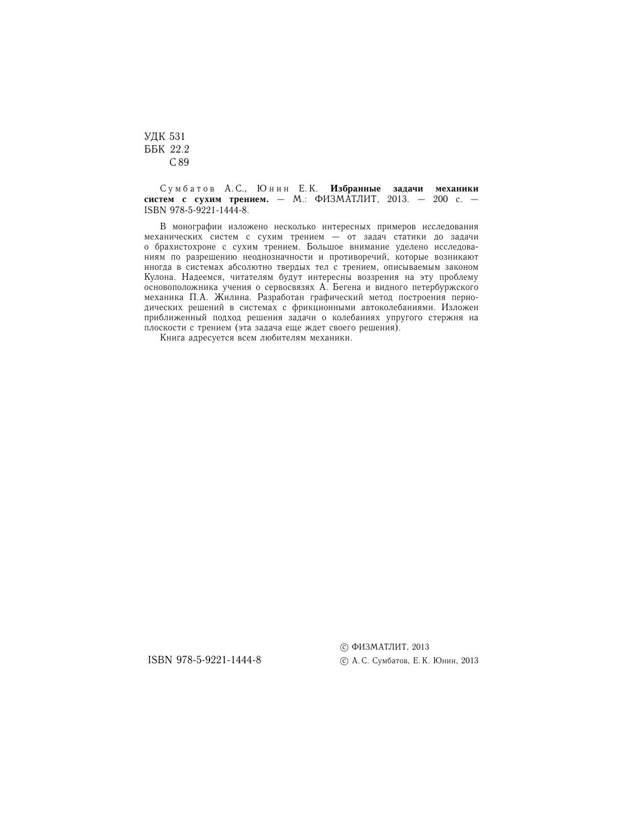 В монографии изложено несколько интересных примеров исследования механических систем с сухим трением — от задач статики до задачи о брахистохроне с сухим трением. Большое внимание уделено исследованиям по разрешению неоднозначности и противоречий, которые возникают иногда в системах абсолютно твердых тел с трением, описываемым законом Кулона. Надеемся, читателям будут интересны воззрения на эту проблему основоположника учения о сервосвязях А. Бегена и видного петербуржского механика П.А. Жилина. Разработан графический метод построения периодических решений в системах с фрикционными автоколебаниями. Изложен приближенный подход решения задачи о колебаниях упругого стержня на плоскости с трением (эта задача еще ждет своего решения).