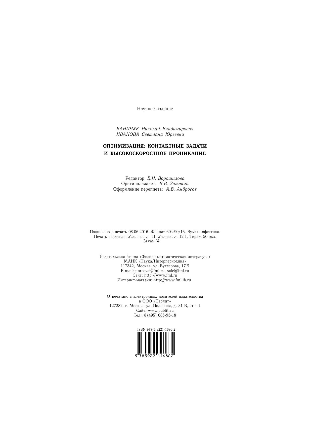 Оптимизация: контактные задачи и высокоскоростное проникание