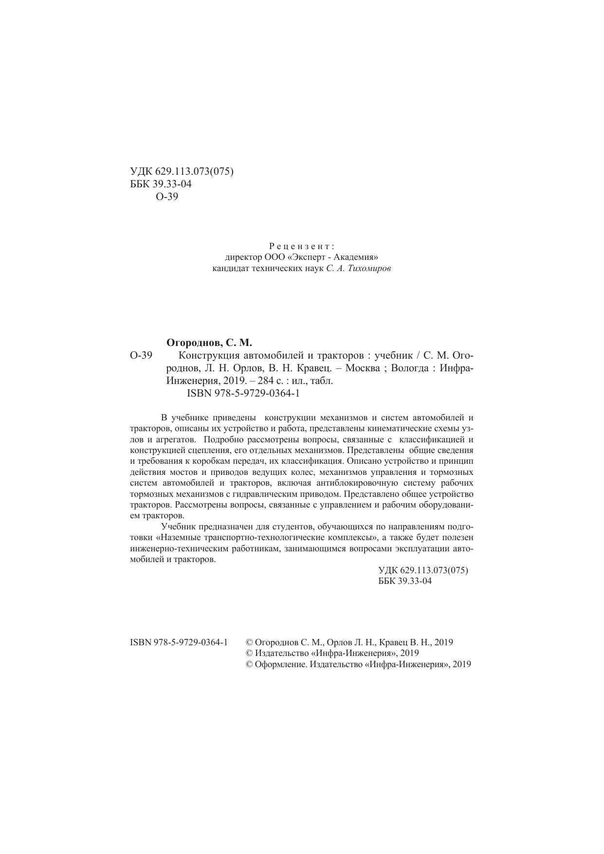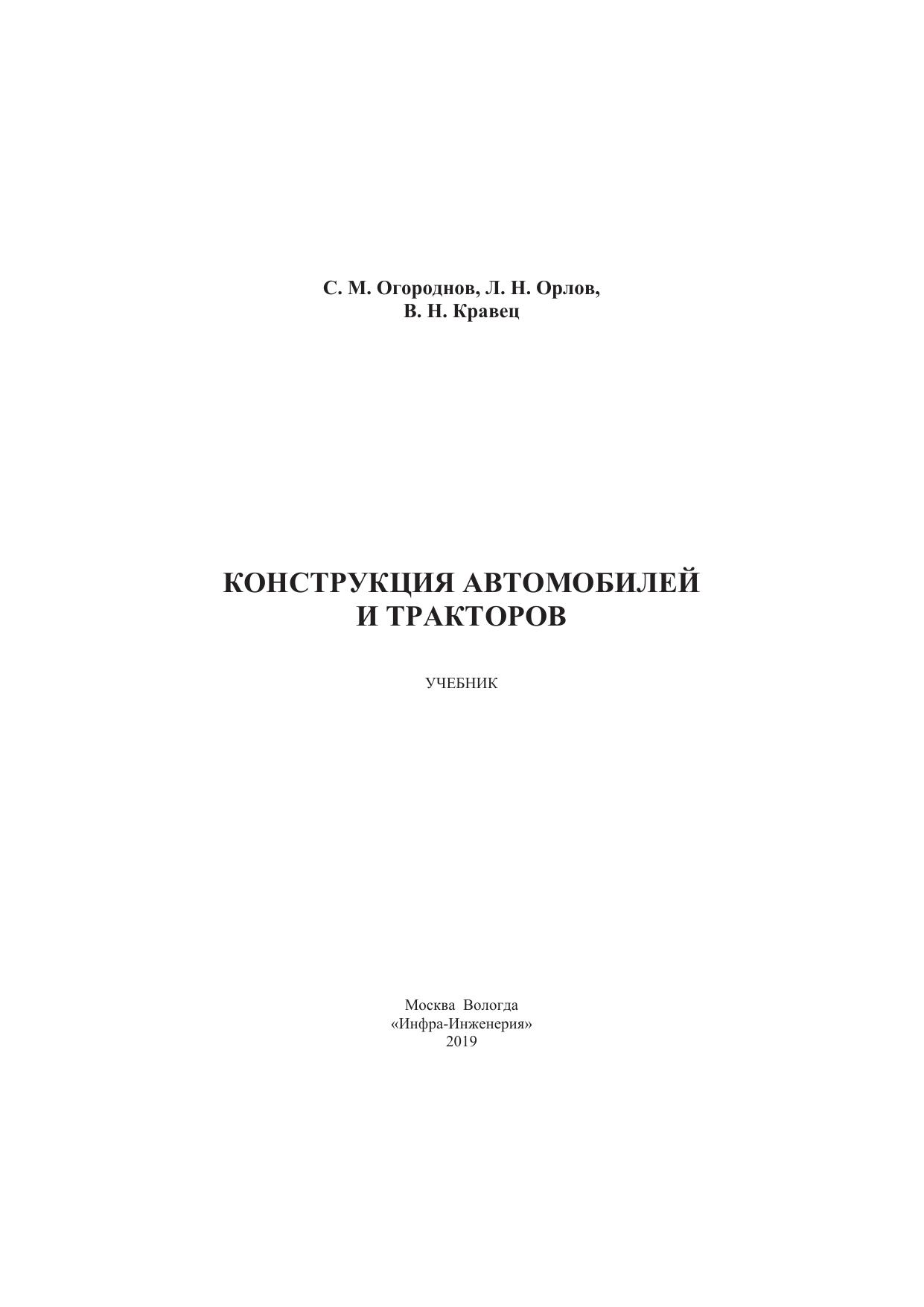Учебник предназначен для студентов, обучающихся по направлениям подготовки «Наземные транспортно-технологические комплексы», а также будет полезен инженерно-техническим работникам, занимающимся вопросами эксплуатации автомобилей и тракторов.