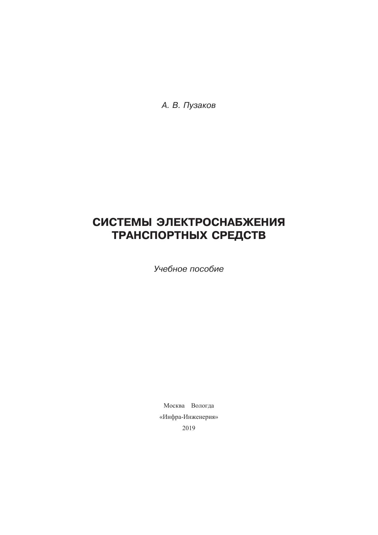 Приведено описание принципов построения и функционирования систем электроснабжения транспортных средств. Раскрыты основные физические законы, на которых базируется работа источников электрической энергии, рассмотрены конструктивное исполнение, параметры и характеристики аккумуляторных батарей и генераторных установок, освещены вопросы технического обслуживания и диагностики систем электроснабжения.
