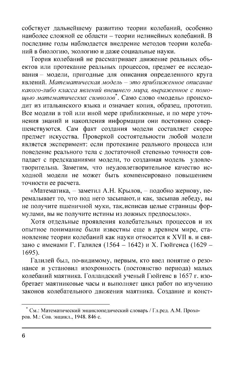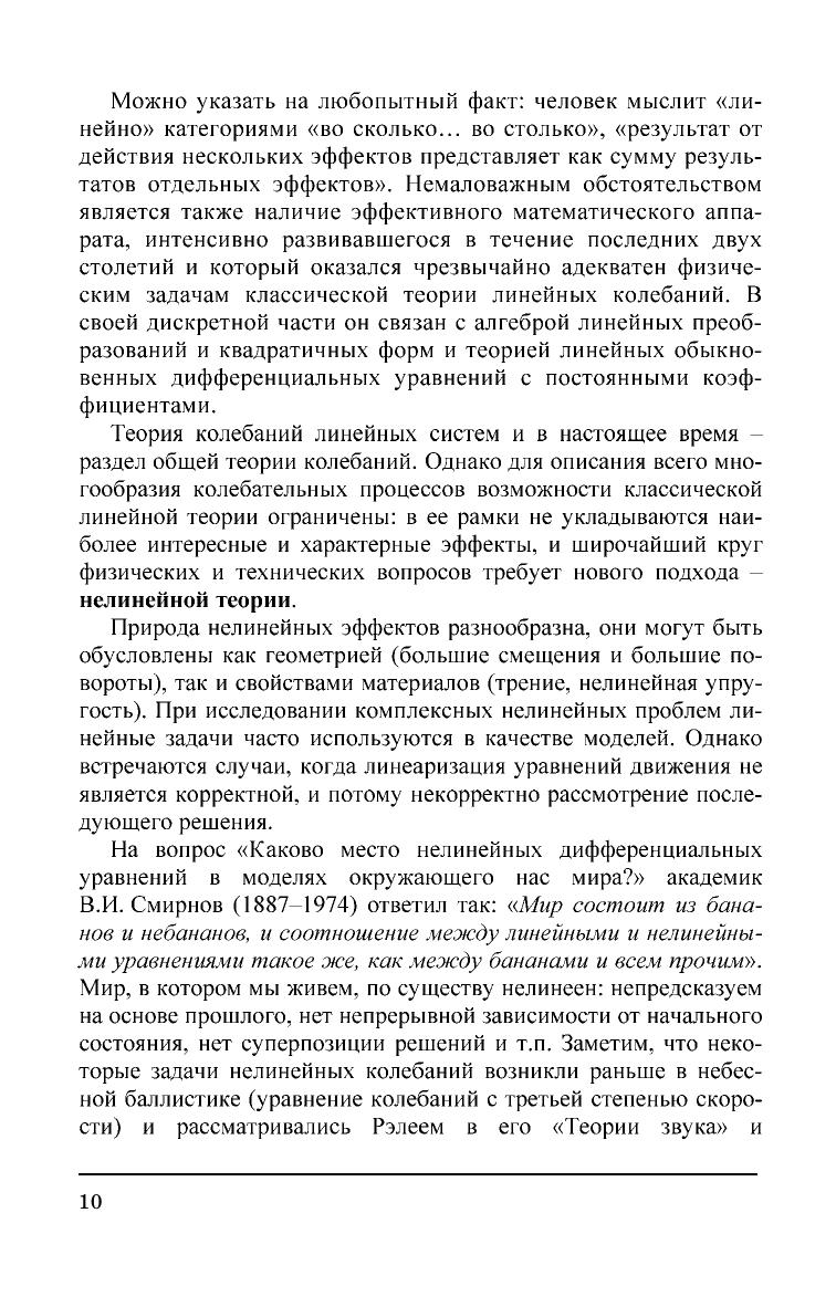 Пособие состоит из двух частей. В первой излагается теория линейных колебаний систем с конечным числом степеней свободы. Наряду с вопросами, входящими в программы дополнительных глав теоретической механики рассмотрены колебания молекул, цепочки осцилляторов, параметрические колебания и сведения из устойчивости движения. Вторая часть посвящена нелинейным колебаниям. Изложены качественные методы анализа нелинейных колебаний и приближённые методы их расчета. Рассмотрены автоколебания в системах с одной степенью свободы, фрикционные и релаксационные колебания. Приведены сведения о стохастических автоколебаниях. Для студентов и аспирантов физико-технических вузов. Может быть полезно инженерам и научным работникам, занимающимся расчётами и исследованиями колебательных систем и процессов.