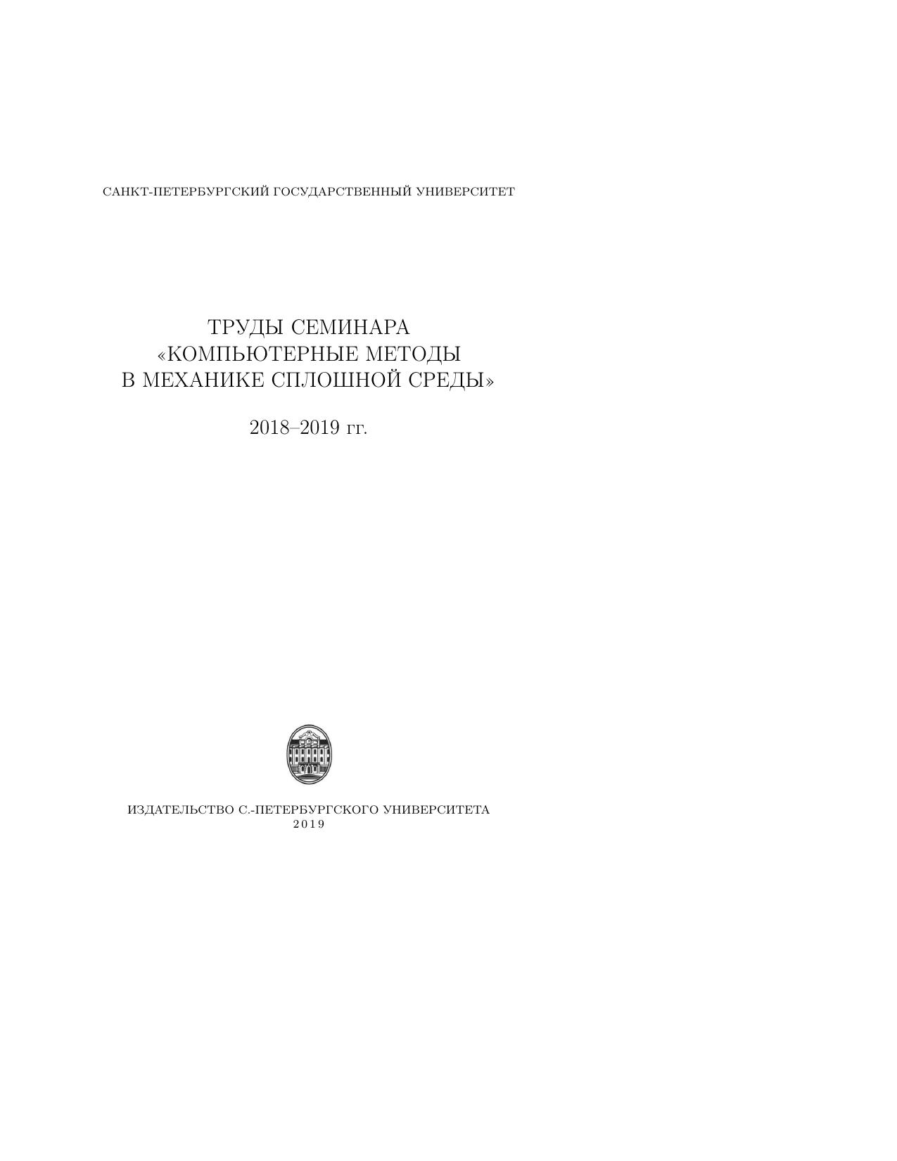 Труды семинара "Компьютерные методы в механике сплошной среды". 2018-2019 гг.