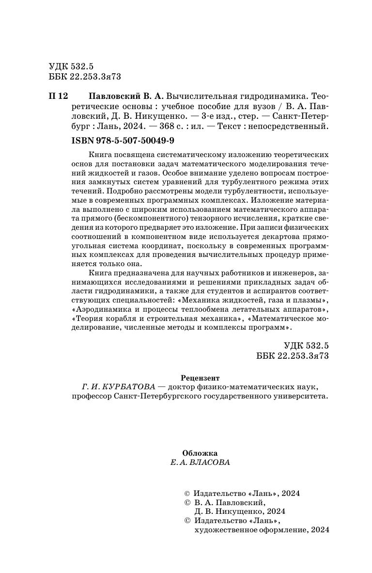 Книга посвящена систематическому изложению теоретических основ для постановки задач математического моделирования течений жидкостей и газов. Особое внимание уделено вопросам построения замкнутых систем уравнений для турбулентного режима этих течений. Подробно рассмотрены модели турбулентности, используемые в современных программных комплексах. Изложение материала выполнено с широким использованием математического аппарата прямого (бескомпонентного) тензорного исчисления, краткие сведения из которого предваряет это изложение. При записи физических соотношений в компонентном виде используется декартова прямоугольная система координат, поскольку в современных программных комплексах для проведения вычислительных процедур применяется только она.Книга предназначена для научных работников и инженеров, занимающимися исследованиями и решениями прикладных задач области гидродинамики, а также для студентов и аспирантов соответствующих специальностей: «Механика жидкостей, газа и плазмы», «Аэродинамика и процессы теплообмена летательных аппаратов», «Теория корабля и строительная механика», «Математическое моделирование, численные методы и комплексы программ».