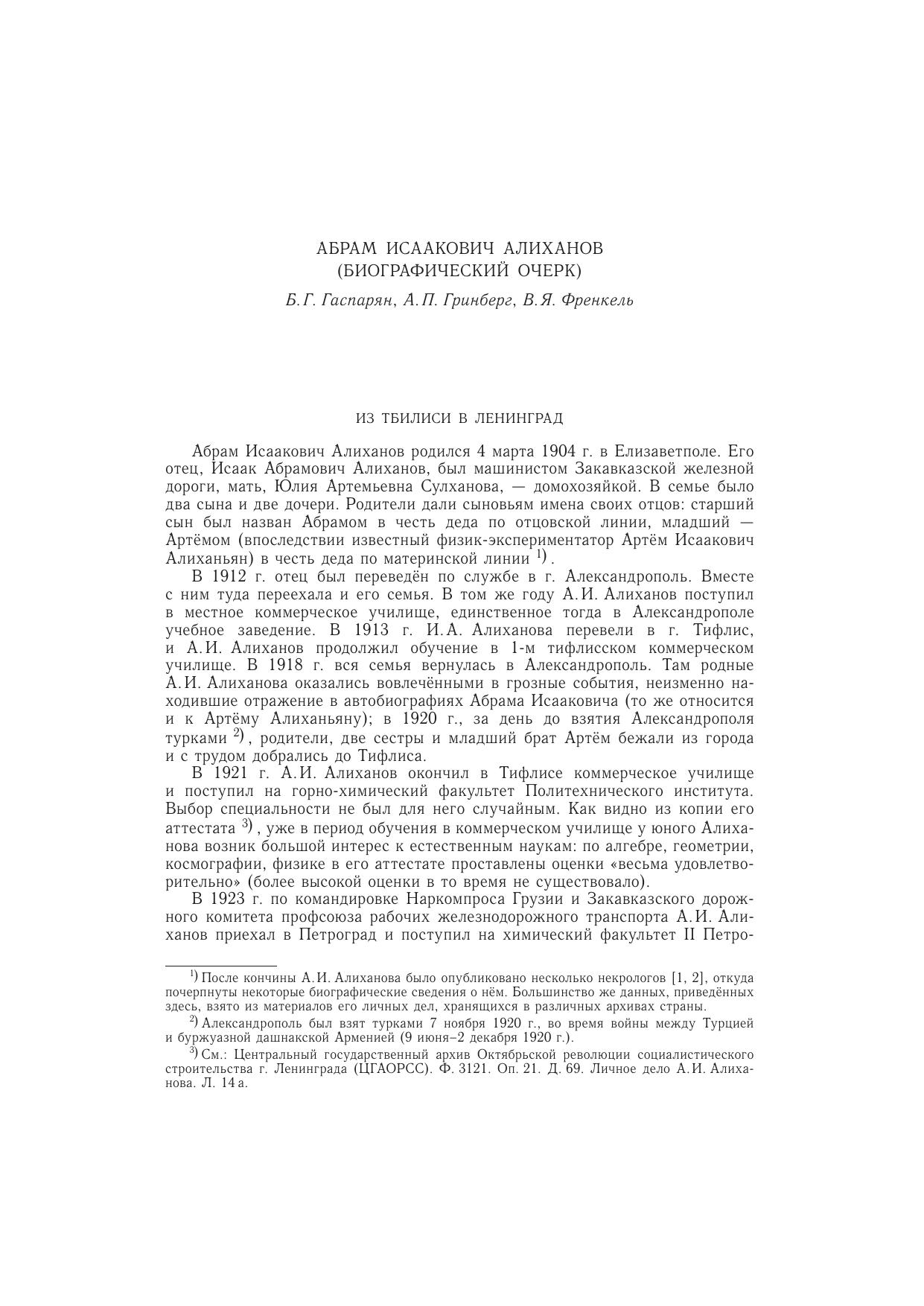 Академик А.И. Алиханов: Воспоминания, письма, документы