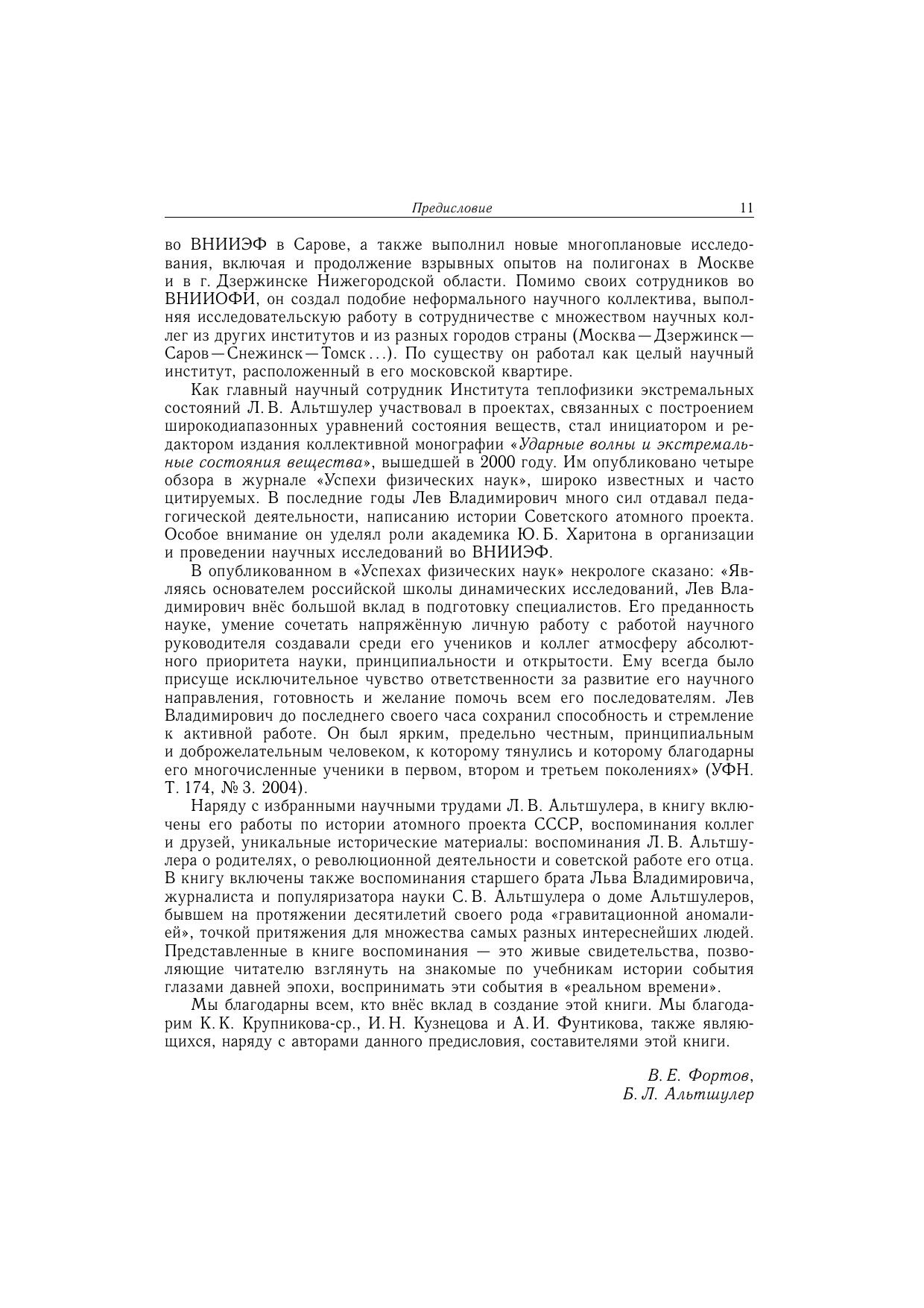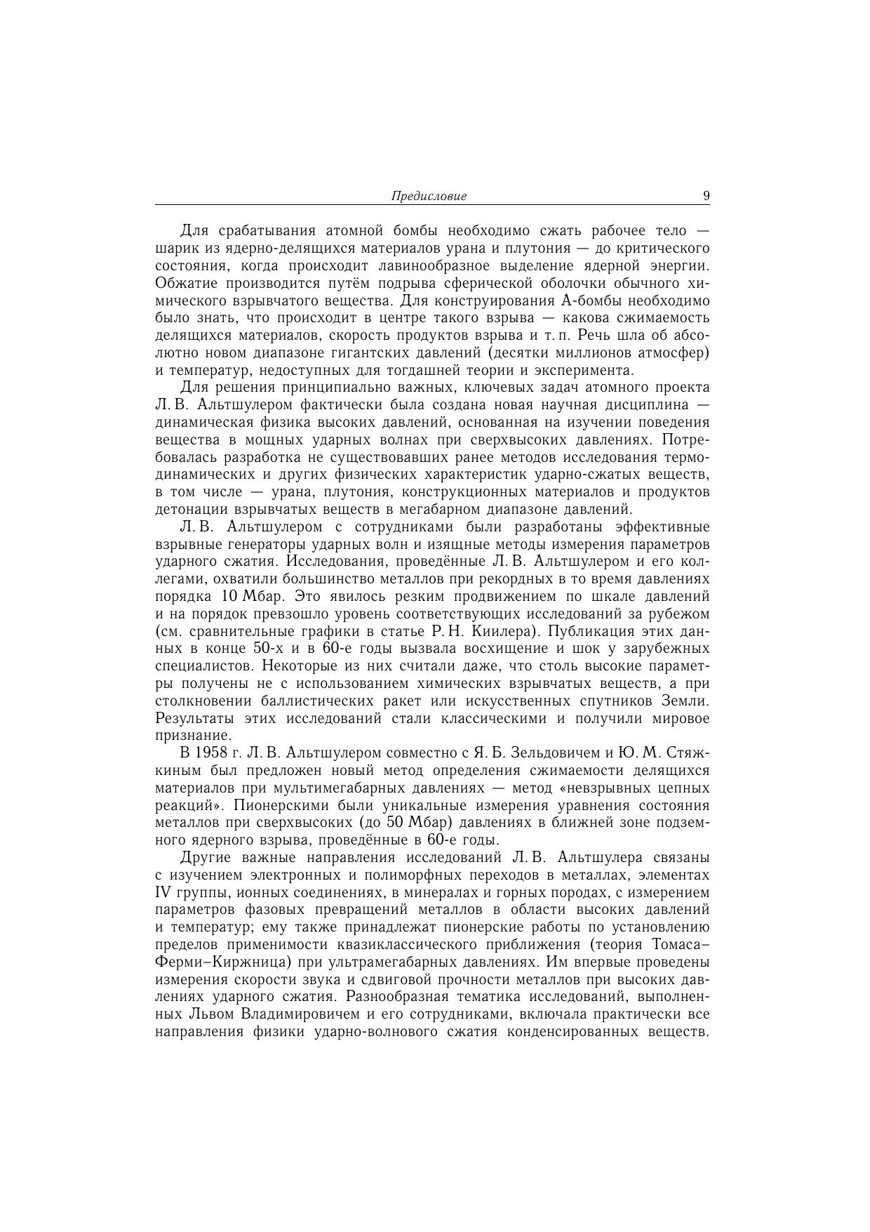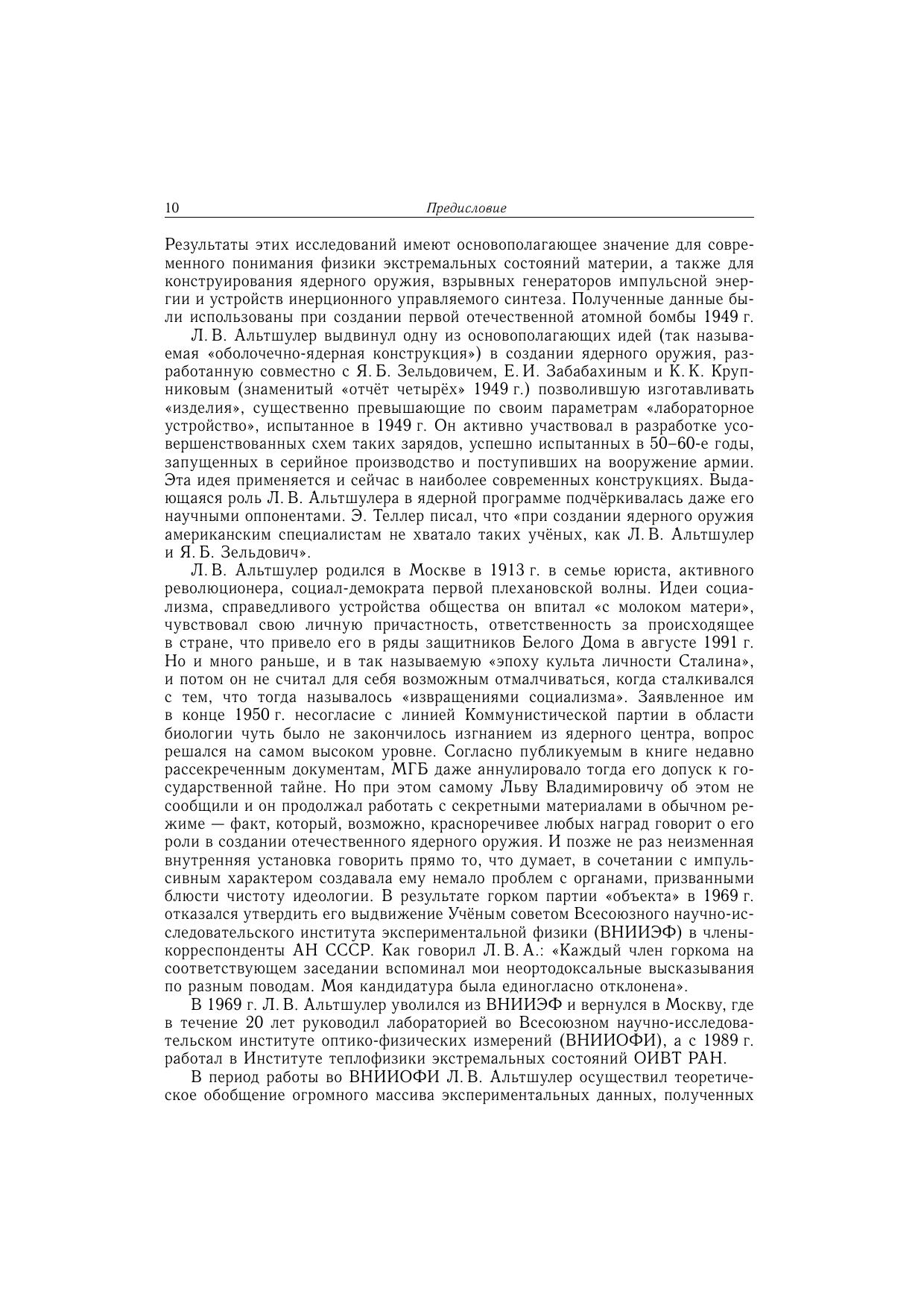 Лев Владимирович Альтшулер - выдающийся учёный, один из основателей и лидеров физики высоких плотностей энергии. Исследуя свойства конденсированных веществ при экстремально высоких давлениях и температурах в ударных волнах, Альтшулер получил важнейшие результаты по сжимаемости делящихся материалов - урана и плутония. Эти работы позволили Л. В. Альтшулеру вместе с Е.И. Забабахиным, Я. Б. Зельдовичем и К.К. Крупниковым предложить новые, усовершенствованные схемы отечественных атомных зарядов, которые были испытаны в 1951 и 1953 гг. Л. В. Альтшулер - человек удивительной судьбы и, можно сказать, экстремального характера, всегда остававшийся внутренне свободным и способный открыто высказывать и отстаивать до конца свои мнения в любой ситуации и в любых исторических обстоятельствах. В книге представлены биографические сведения о Л.В. Альтшулере, его научные труды и другие публикации и доклады представлены воспоминания друзей и родственников, коллег и учеников, в частности, многих известных ученых, а также некоторые архивные документы и письма. Для широкого круга читателей, интересующихся историей развития науки, историей советского Атомного проекта