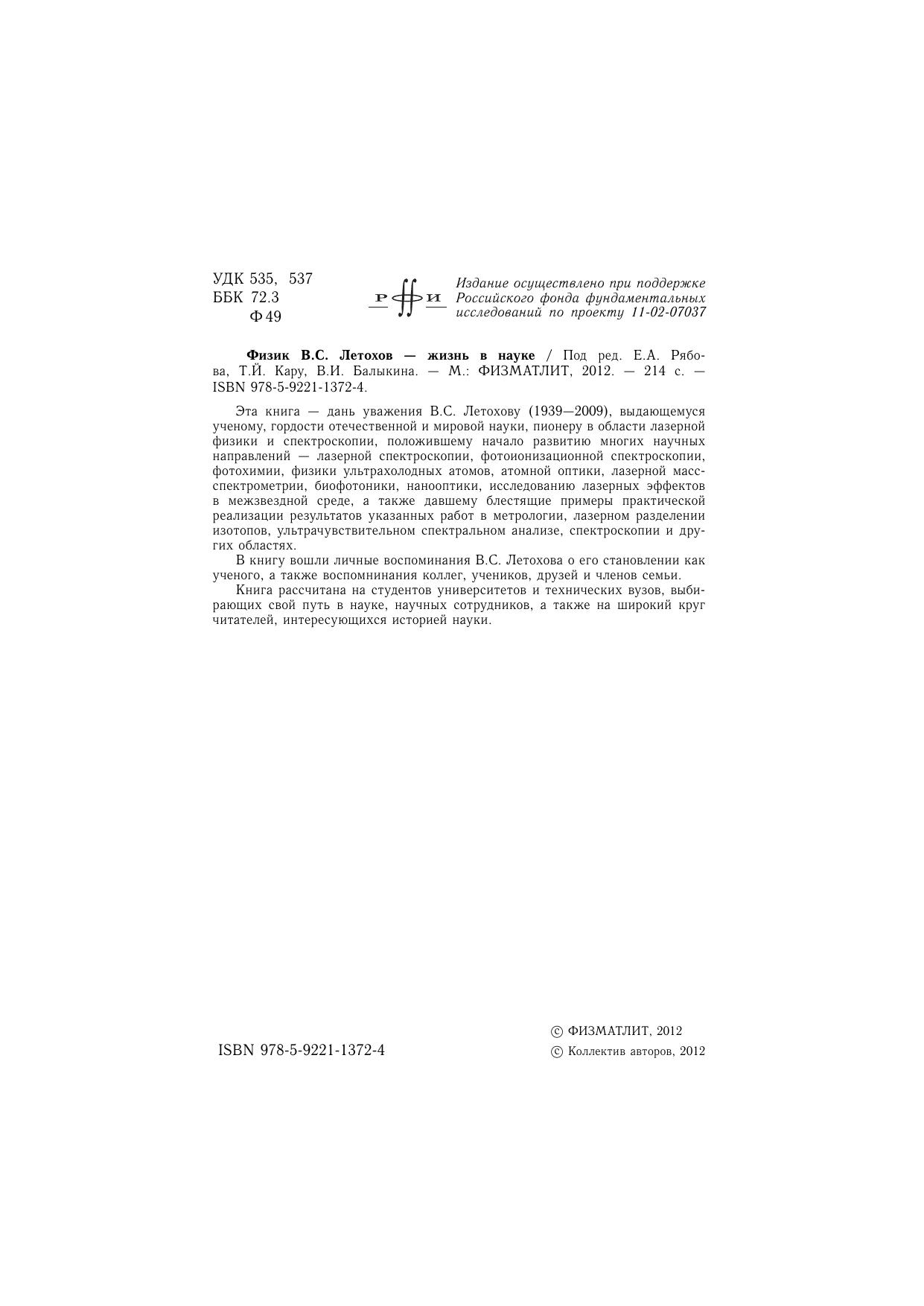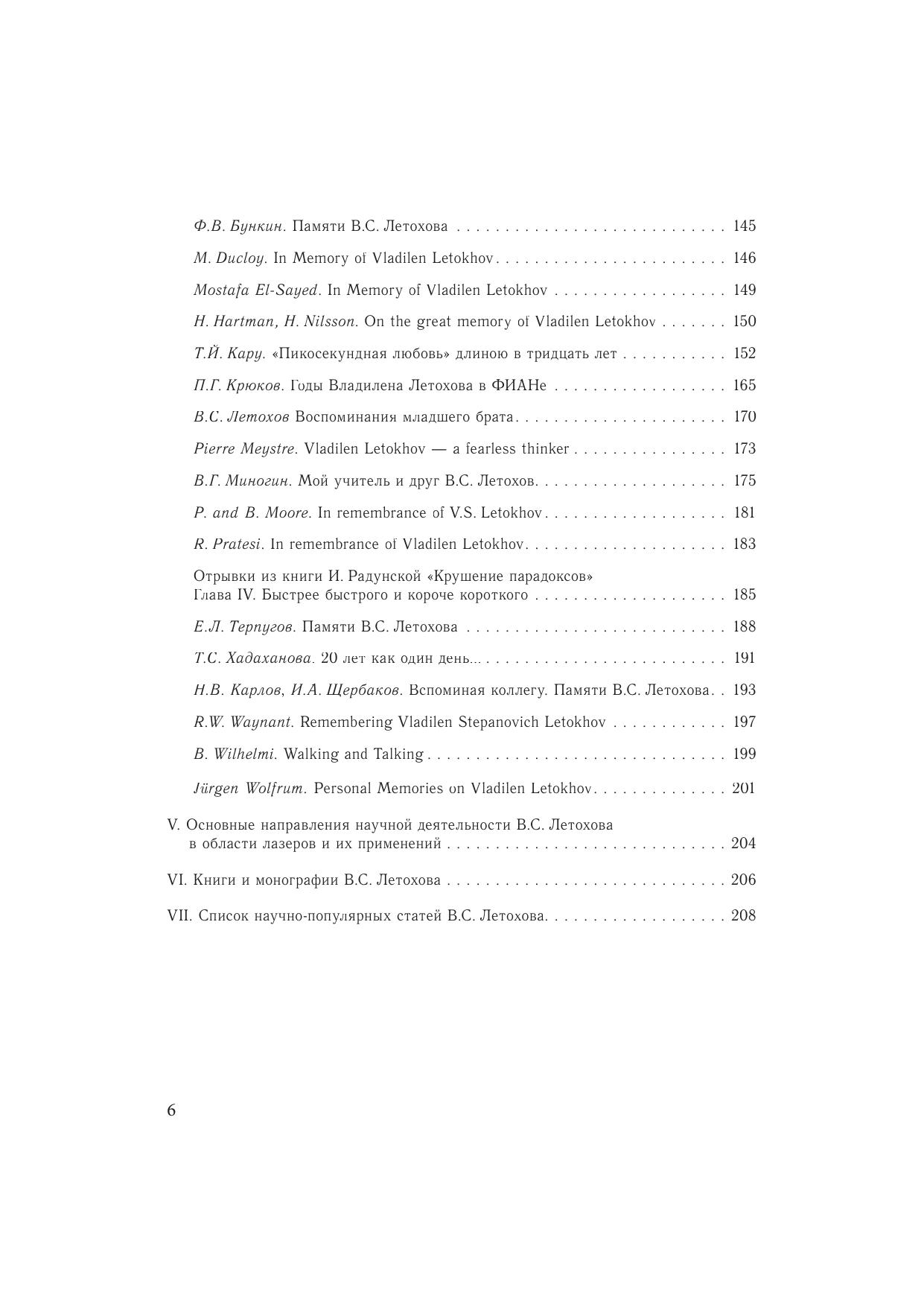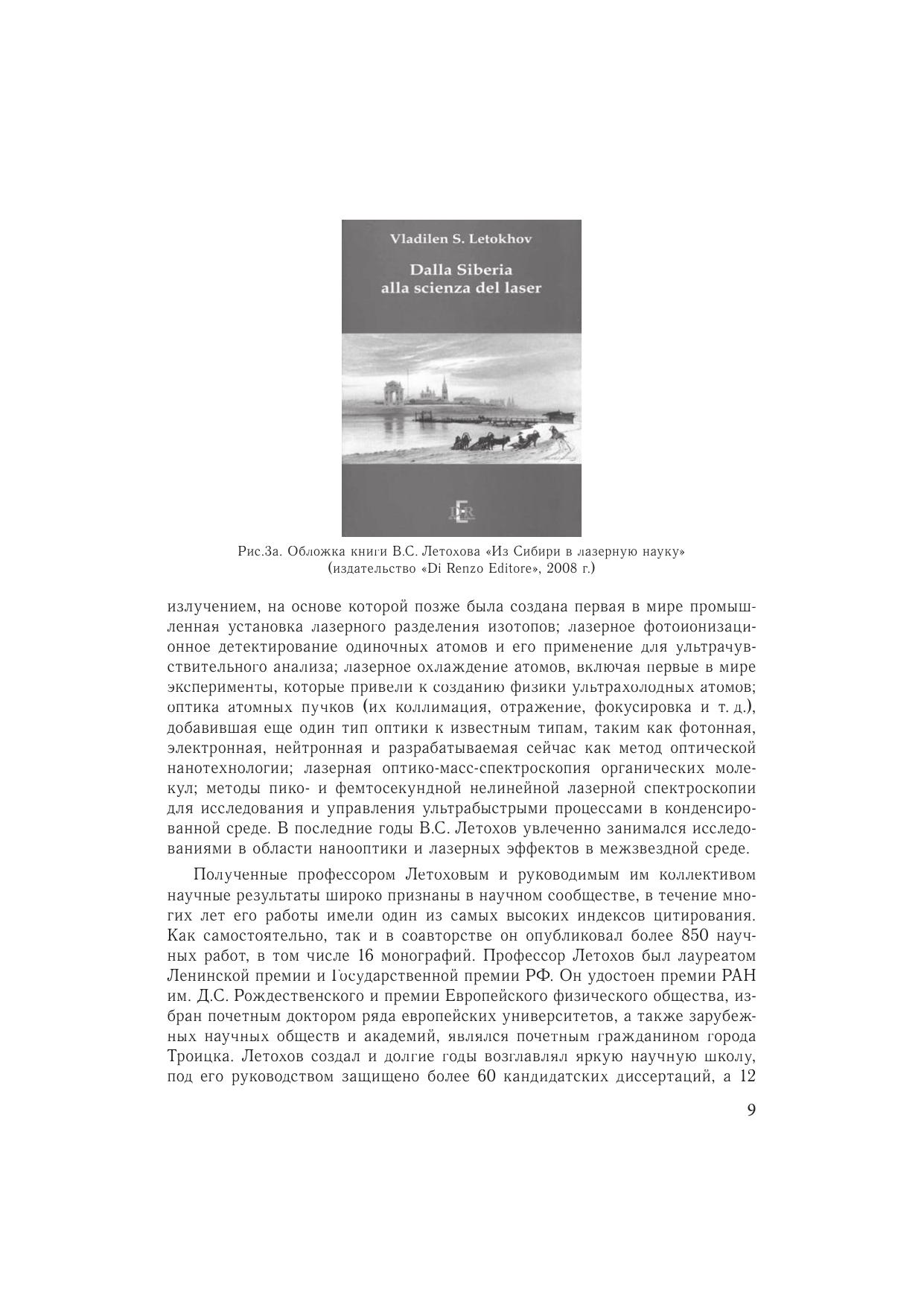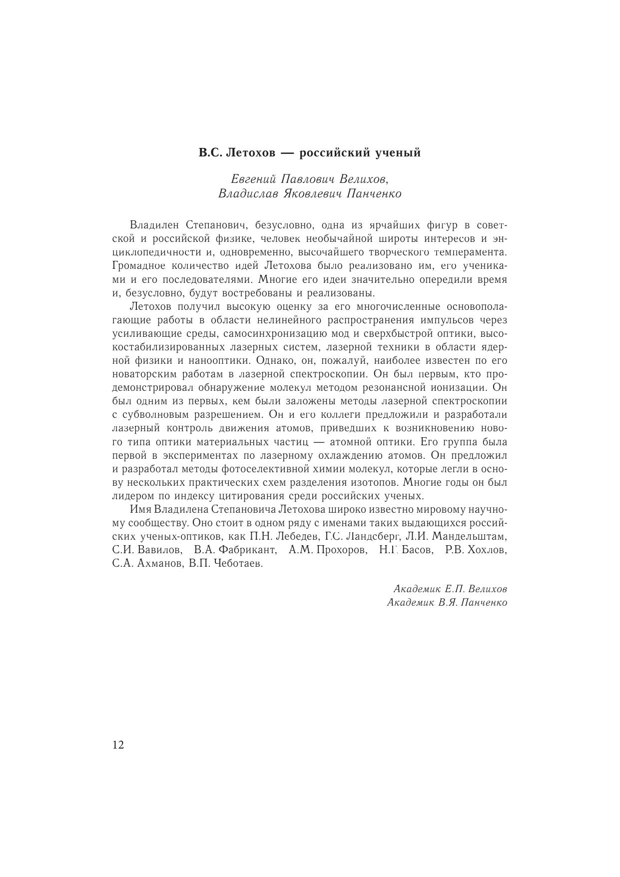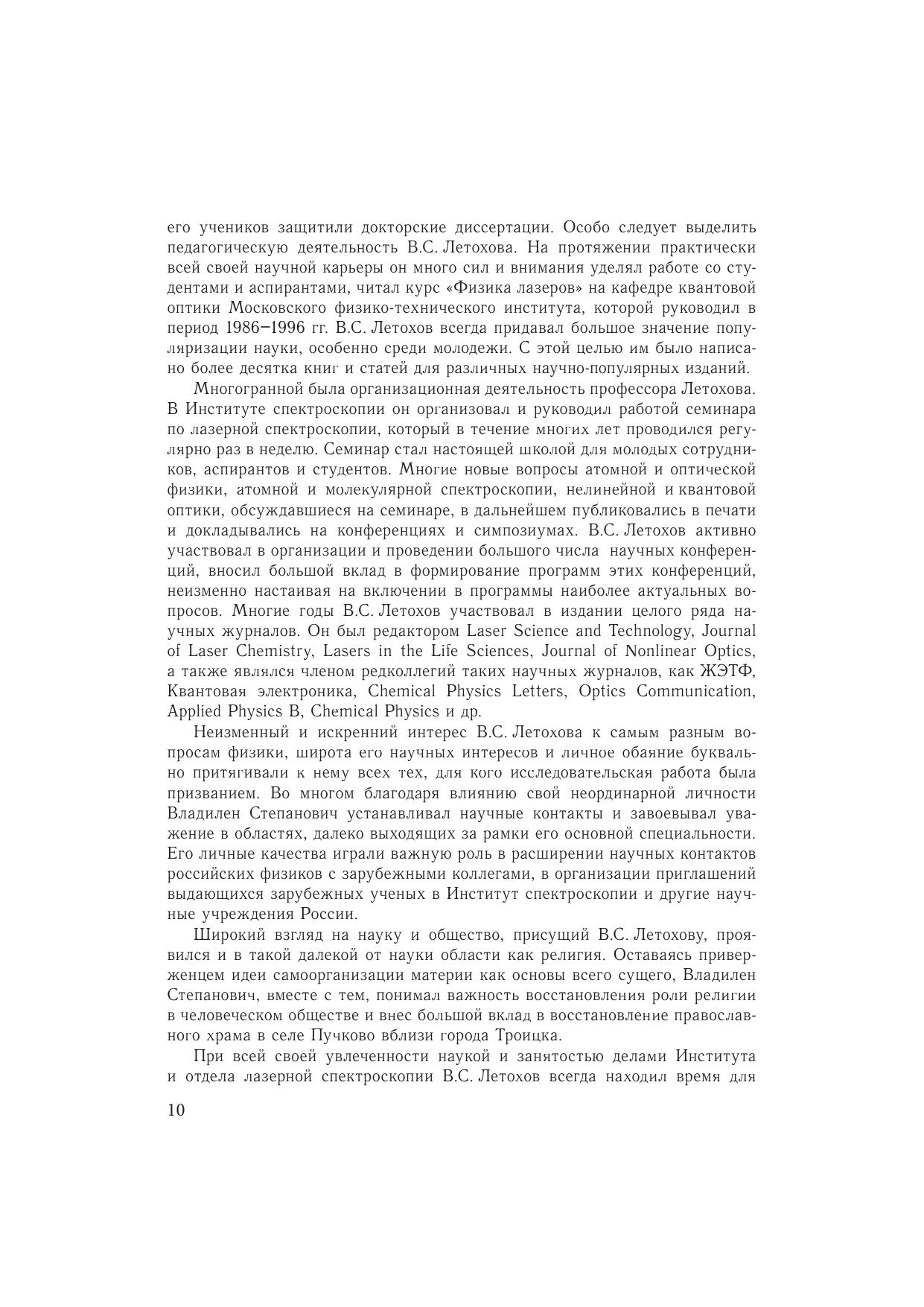 Эта книга — дань уважения В.С. Летохову (1939—2009), выдающемуся ученому, гордости отечественной и мировой науки, пионеру в области лазерной физики и спектроскопии, положившему начало развитию многих научных направлений — лазерной спектроскопии, фотоионизационной спектроскопии, фотохимии, физики ультрахолодных атомов, атомной оптики, лазерной массспектрометрии, биофотоники, нанооптики, исследованию лазерных эффектов в межзвездной среде, а также давшему блестящие примеры практической реализации результатов указанных работ в метрологии, лазерном разделении изотопов, ультрачувствительном спектральном анализе, спектроскопии и других областях. В книгу вошли личные воспоминания В.С. Летохова о его становлении как ученого, а также воспомнинания коллег, учеников, друзей и членов семьи. Книга рассчитана на студентов университетов и технических вузов, выбирающих свой путь в науке, научных сотрудников, а также на широкий круг читателей, интересующихся историей науки.