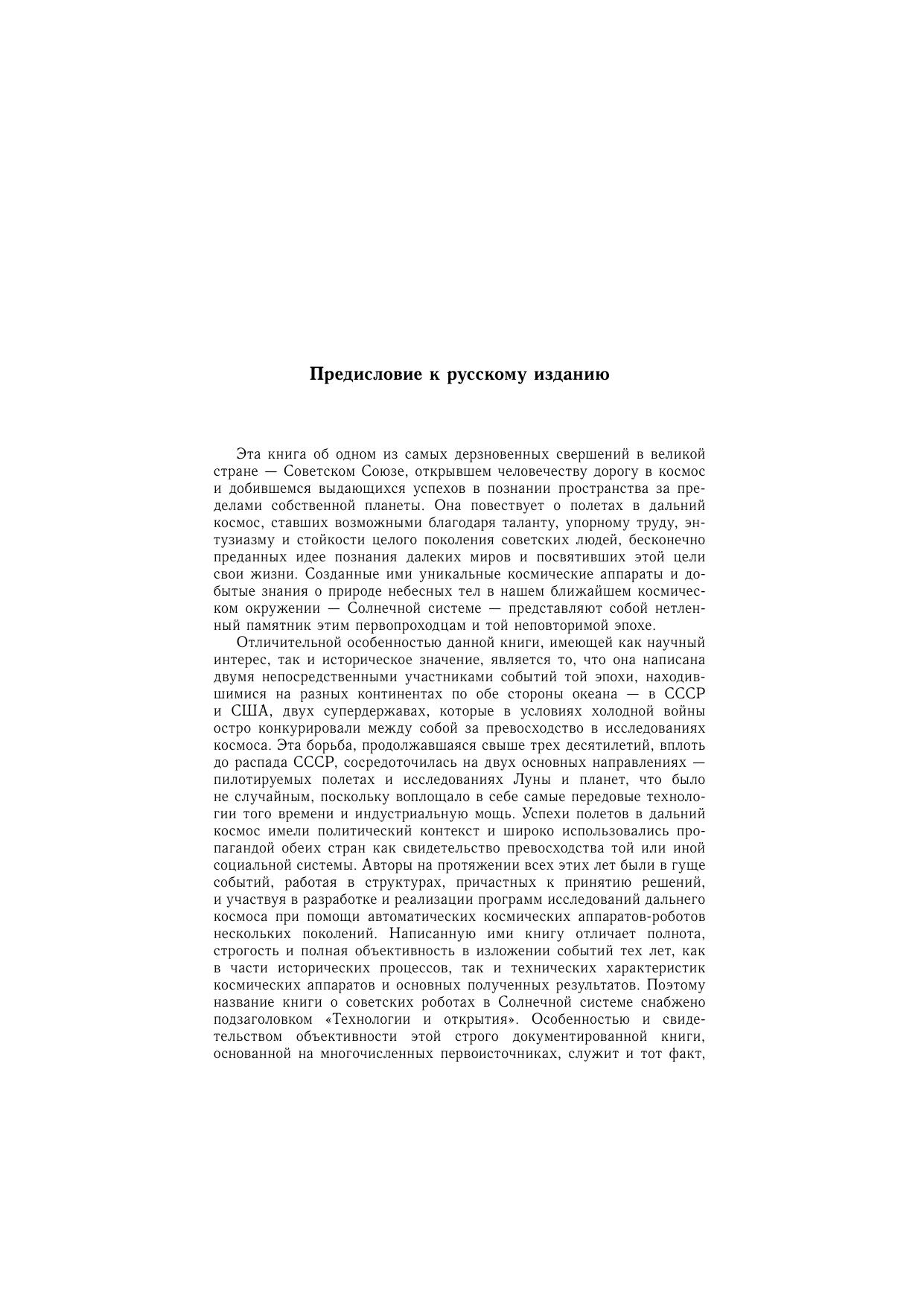 Программа космических исследований в СССР началась и осуществлялась в первые десятилетия космической эры в обстановке холодной войны и жесткой конкуренции с США за обладание ведущими позициями в мире. Этот период отмечен выдающимися научными и техническими свершениями, достигнутыми благодаря исключительному таланту советских ученых и инженеров, создавших замечательные космические аппараты-роботы и получивших пионерские результаты мирового значения. Данная книга содержит хронологически полный и объективный анализ этих достижений вместе со сложностями и неудачами при осуществлении технических проектов на фоне советско-американского соперничества в этой области. В книге приведено наиболее полное техническое описание советских лунно-планетных космических аппаратов, дан уникальный анализ программ исследований, технических решений и сценариев полетов, рассмотрены вопросы планирования космических миссий, достигнутые результаты и причины неудач, отражена глубина и техническое совершенство космических проектов, что позволило СССР занять лидирующие позиции в исследованиях Луны и планет автоматическими аппаратами во второй половине XX века. Для широкого круга читателей, интересующихся проблемами исследования космоса.