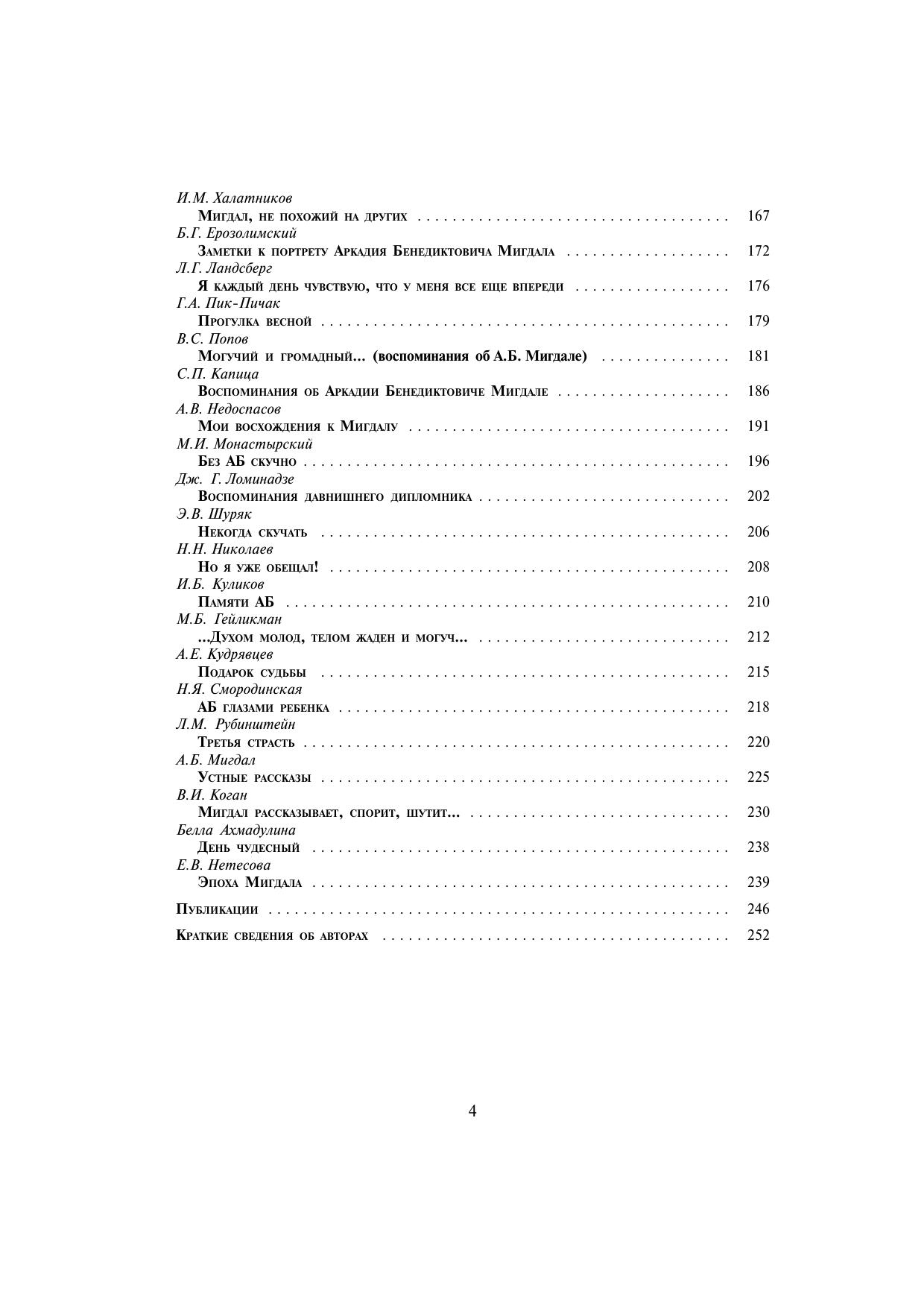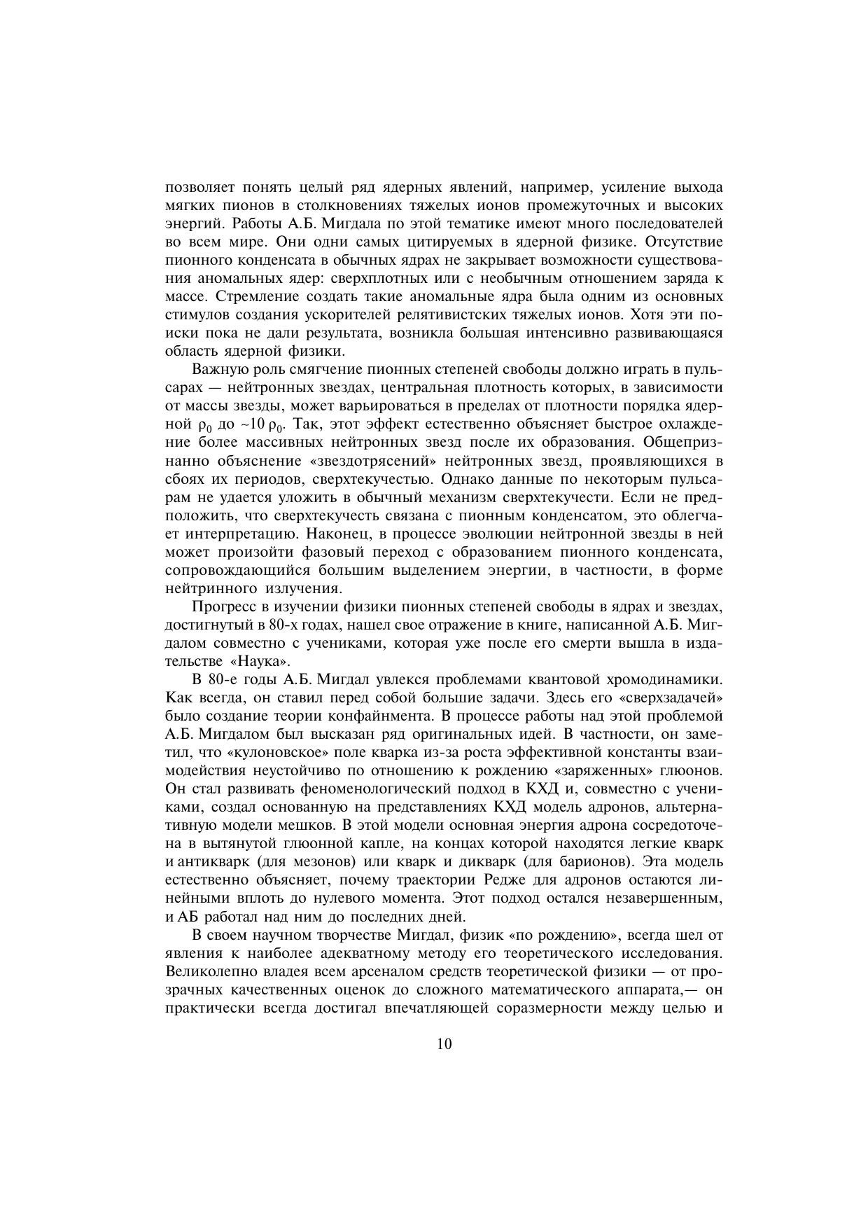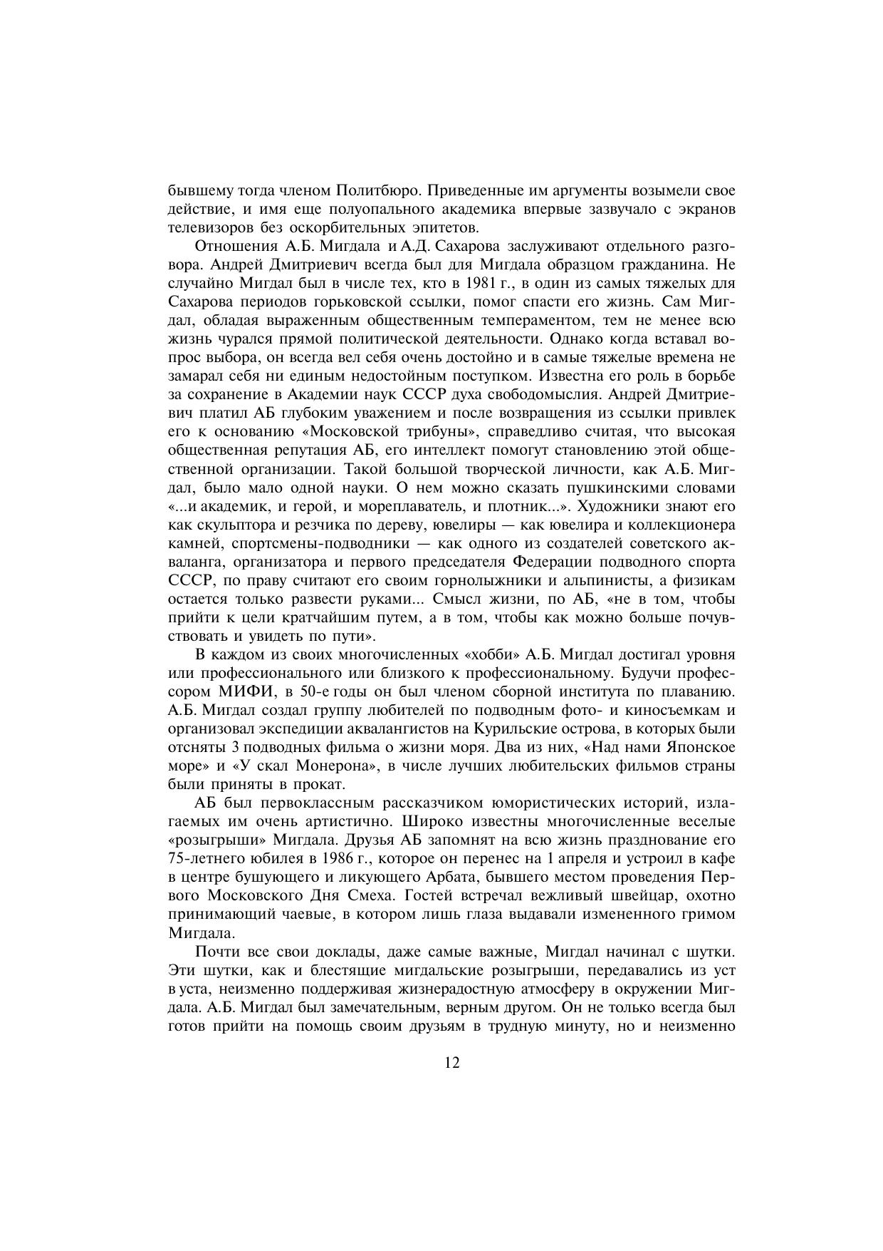 В этом сборнике публикуются воспоминания примерно пятидесяти авторов - друзей и учеников выдающегося физика, академика А.Б. Мигдала, которые охватывают сорокалетний период от начала 1950-х до 1991 г. Каждое из них в какой-то мере несет отпечаток и личности автора и особенностей его памяти. Не удивительно, что иногда одни и те же события в разных статьях выглядят несколько по-разному. Авторские тексты редактировались только в случае явных фактических ошибок. Небольшие же отклонения от , порой даже помогают взглянуть с разных сторон на такого неординарного человека, каким был Мигдал, и способствуют воссозданию многомерной картины той среды, в которой он жил и которую он сам в значительной мере формировал.