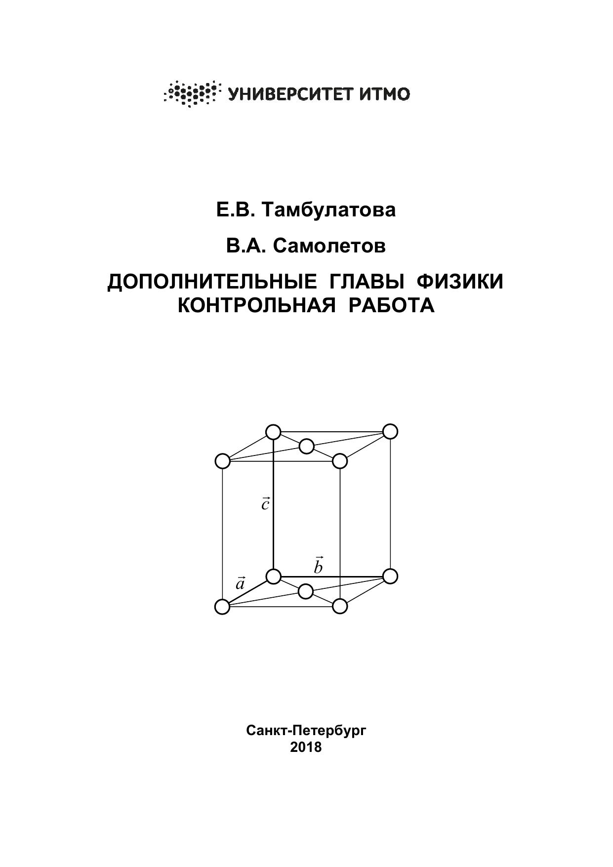 Приведены 30 вариантов контрольной работы по дисциплине «Дополнительные главы физики». Каждый вариант состоит из пяти заданий, которые включают два теоретических вопроса, две задачи и одно тестовое задание. Приведены методические указания и исходные данные для выполнения контрольной работы.
