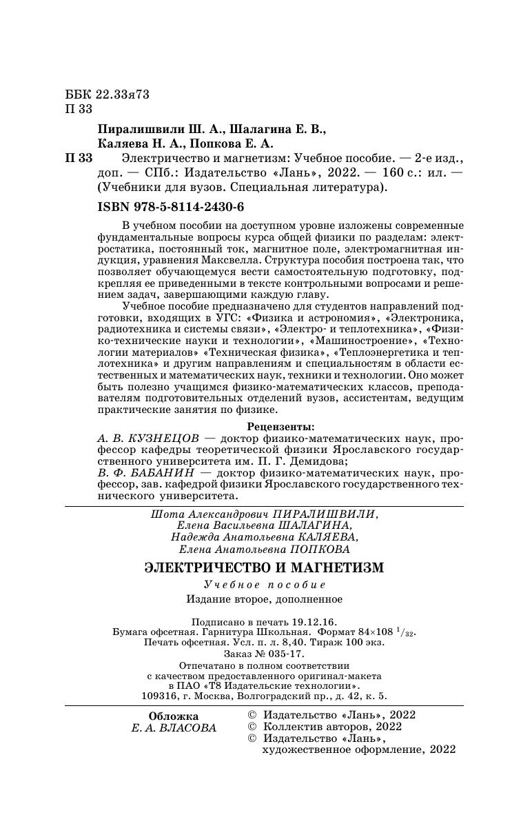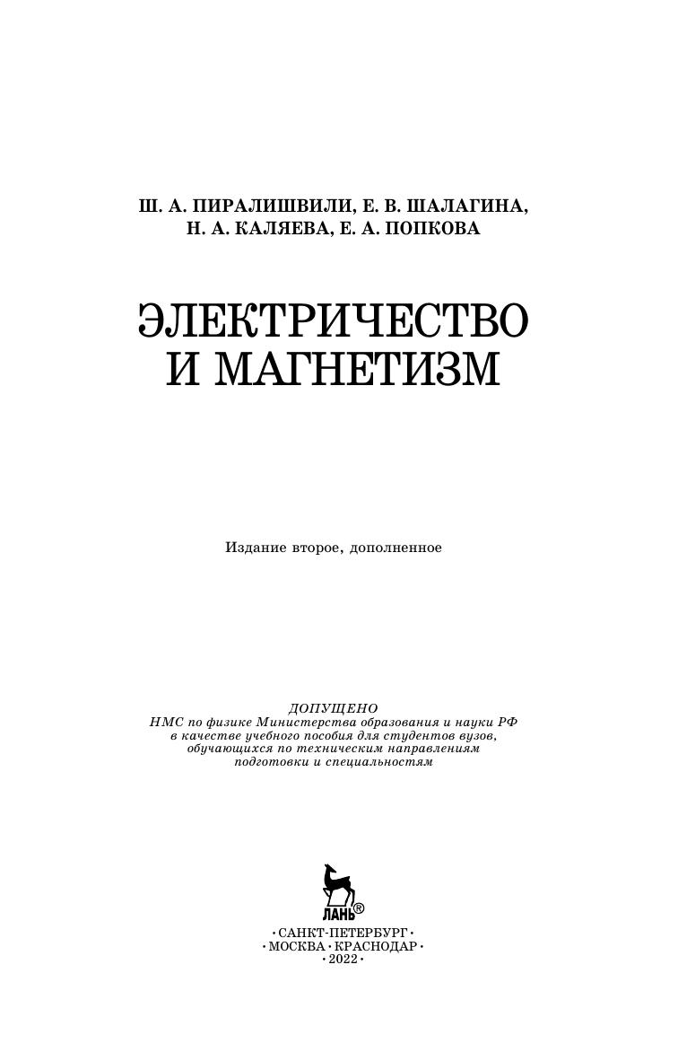 В учебном пособии на доступном уровне изложены современные фундаментальные вопросы курса общей физики по разделам: электростатика, постоянный ток, магнитное поле, электромагнитная индукция, уравнения Максвелла. Структура пособия построена так, что позволяет обучающемуся вести самостоятельную подготовку, подкрепляя ее приведенными в тексте контрольными вопросами и решением задач, завершающими каждую главу. Учебное пособие предназначено для студентов направлений подготовки, входящих в УГС: «Физика и астрономия», «Электроника, радиотехника и системы связи», «Электро- и теплотехника», «Физико-технические науки и технологии», «Машиностроение», «Технологии материалов» «Техническая физика», «Теплоэнергетика и теплотехника» и другим направлениям и специальностям в области естественных и математических наук, техники и технологии. Оно может быть полезно учащимся физико-математических классов, преподавателям подготовительных отделений вузов, ассистентам, ведущим практические занятия по физике.