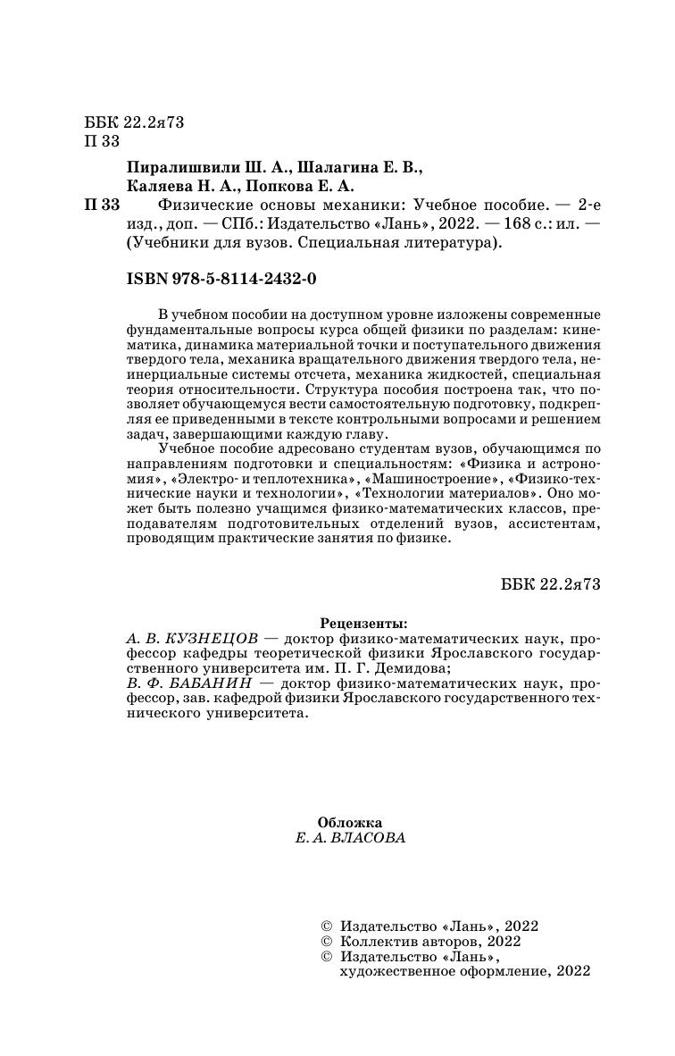 В учебном пособии на доступном уровне изложены современные фундаментальные вопросы курса общей физики по разделам: кинематика, динамика материальной точки и поступательного движения твердого тела, механика вращательного движения твердого тела, неинерциальные системы отсчета, механика жидкостей, специальная теория относительности. Структура пособия построена так, что позволяет обучающемуся вести самостоятельную подготовку, подкрепляя ее приведенными в тексте контрольными вопросами и решением задач, завершающими каждую главу. Учебное пособие адресовано студентам вузов, обучающихся по направлениям подготовки и специальностям: «Физика и астрономия», «Электро- и теплотехника», «Машиностроение», «Физико-технические науки и технологии», «Технологии материалов». Оно может быть полезно учащимся физико-математических классов, преподавателям подготовительных отделений вузов, ассистентам, проводящим практические занятия по физике.
