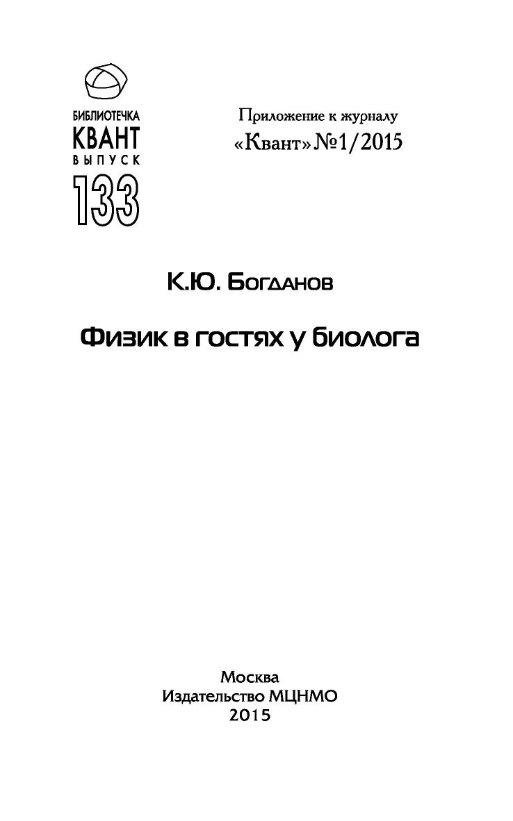 Физик в гостях у биолога. Библиотечка «Квант» выпуск 133. Приложение к журналу «Квант» №1/2015 Новинка