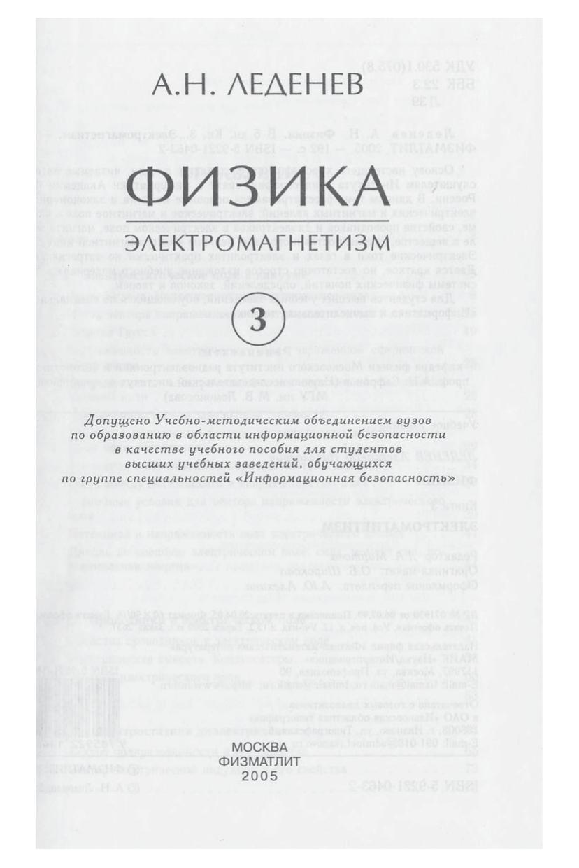 Основу настоящего курса физики составляют лекции, читаемые автором слушателям Института криптографии, связи и информатики Академии ФСБ России. В данном томе рассматриваются основные понятия и закономерности электрических и магнитных явлений: электрическое и магнитное поле в вакууме, свойства проводников и диэлектриков в электрическом поле, магнитное поле в веществе, законы постоянного тока, явление электромагнитной индукции. Электрические токи в газах и электролитах практически не затрагиваются. Дается краткое, но достаточно строгое изложение учебного материала в виде системы физических понятий, определений, законов и теорем. Для студентов высших учебных заведений, обучающихся по специальности «Информатика и вычислительная техника».