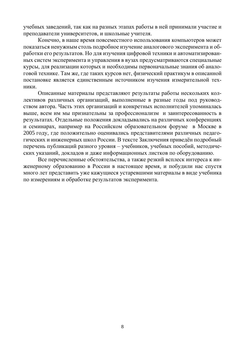 В учебнике дано описание современного оригинального, включающего две части — измерительную и демонстрационную — практикума вуза. В главе 1 изложены основы теории аналоговых измерений и основные измерительные приборы, в главе 2 — основы теории погрешностей, которые реализованы в простейших измерениях, описанных в главе 3. В главе 4 достаточно подробно, со сценариями расчета погрешностей, описан измерительный лабораторный практикум, состоящий из 20 лабораторных работ. В главе 5 описан оригинальный демонстрационный практикум из 49 демонстраций по разным разделам физики, скомпонованный в семь демонстрационных установок. Изложение в каждой главе снабжено необходимым количеством иллюстраций и математических зависимостей. Предназначено для студентов вузов, изучающих основы методов измерений и измерительной техники в курсе физики, и преподавателей различных образовательных учреждений.