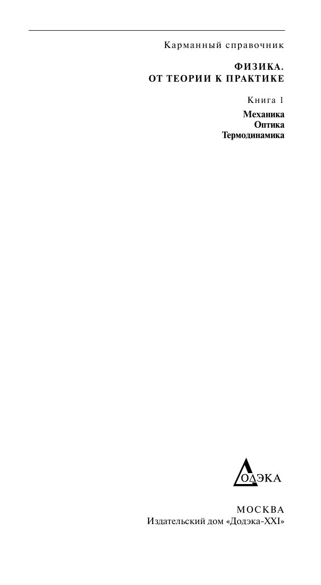 Физика. От теории к практике. В 2 кн. Кн. 1: Механика, оптика, термодинамика: Карманный справочник