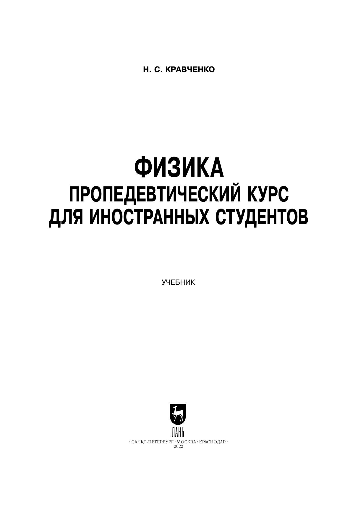 Физика. Пропедевтический курс для иностранных студентов