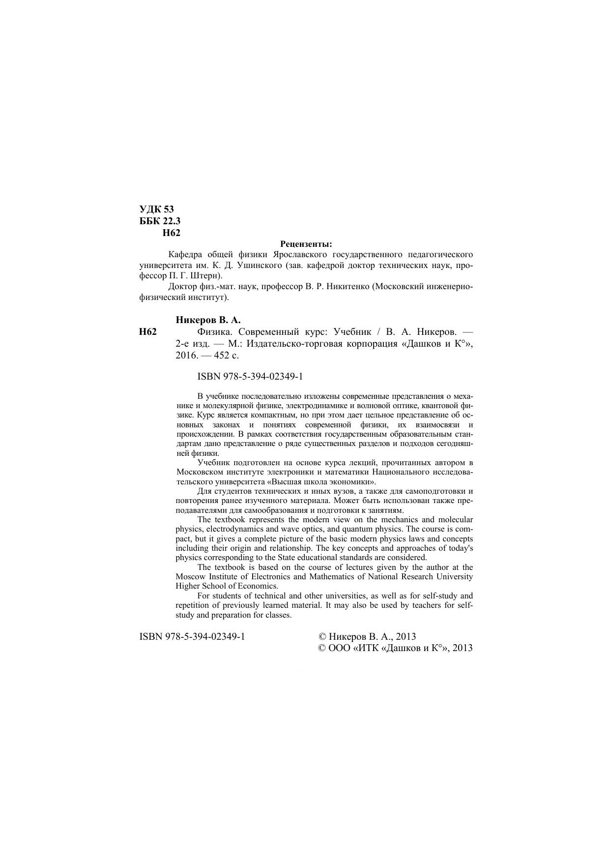 Гриф: Допущено Научно-методическим советом по физике Министерства образования и науки Российской Федерации в качестве учебника для студентов высших учебных заведений, обучающихся по техническим направлениям подготовки и специальностям